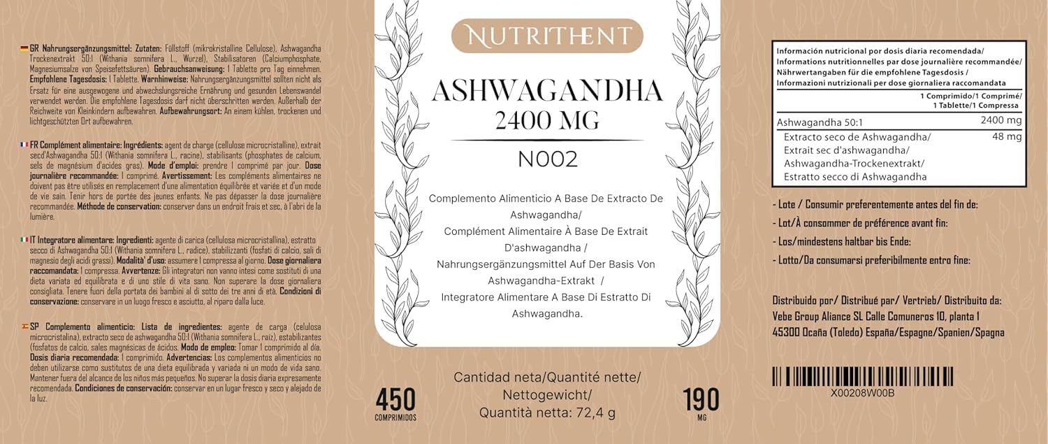 Para consultar el precio de los 450 Comprimidos de Ashwagandha de Alta Potencia para 450 días, con una concentración de 2400mg por comprimido y certificación VEGANO, Sin Gluten y Sin OGM, simplemente haz clic en el botón a continuación. ¡Descubre cuánto cuesta este increíble producto y comienza a disfrutar de sus beneficios hoy mismo! 🌿💰👇