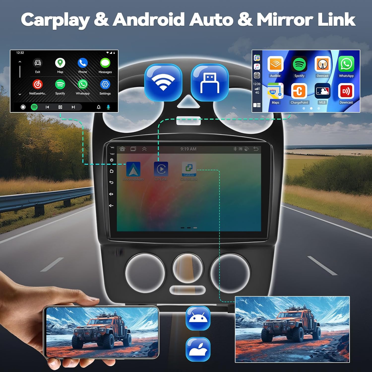 Este radio de coche cuenta con una pantalla de 9 pulgadas que ofrece una visualización clara y nítida de todas las funciones y aplicaciones. Además, es compatible con CarPlay y Android Auto, lo que te permite acceder a tus aplicaciones favoritas, realizar llamadas y navegar de forma segura mientras conduces.