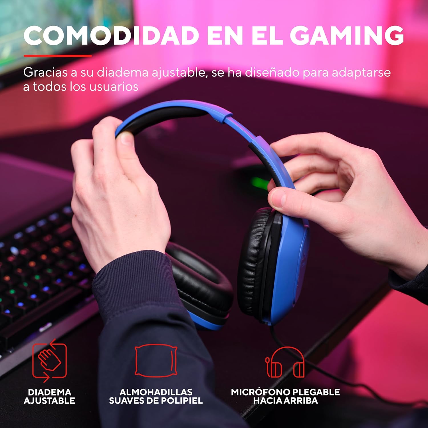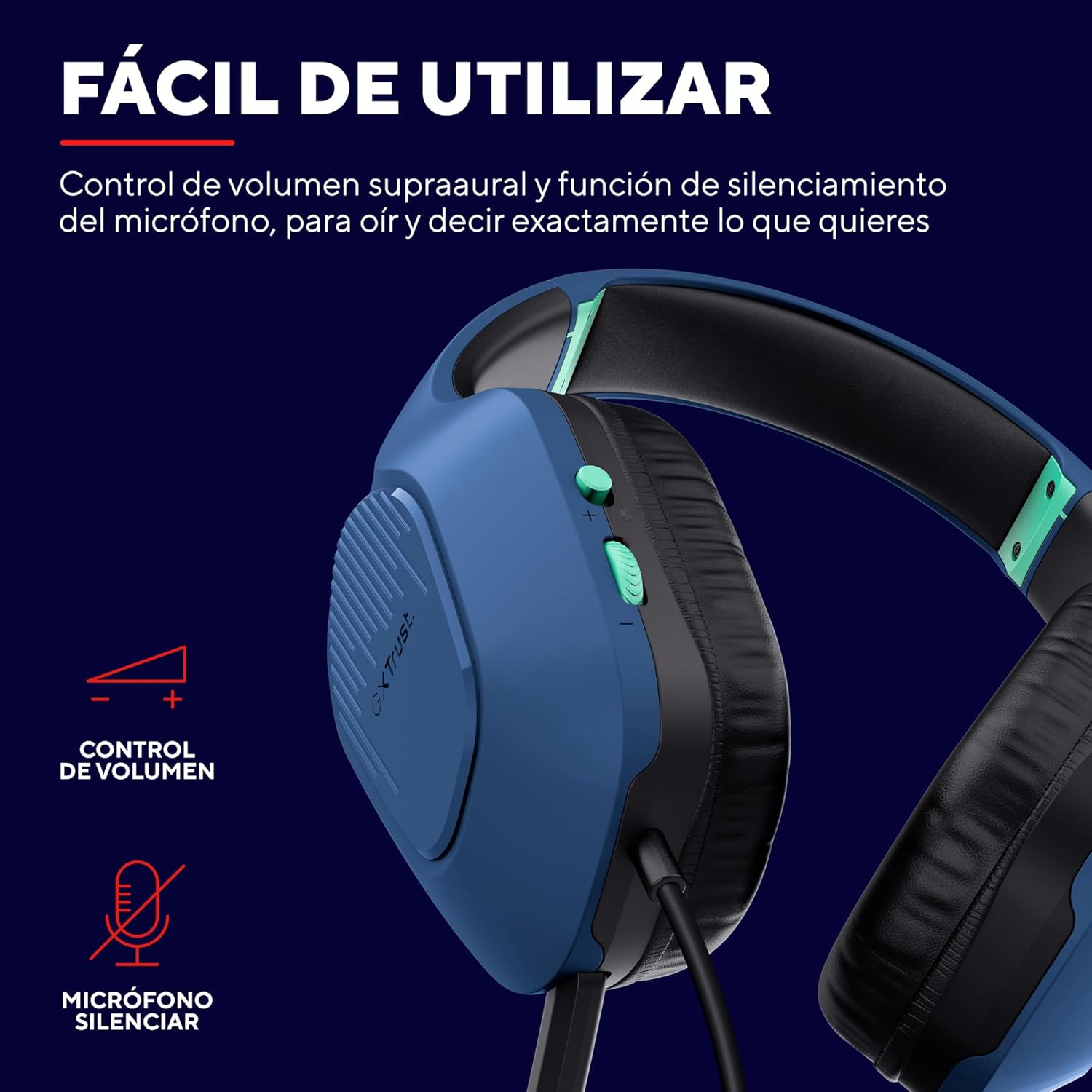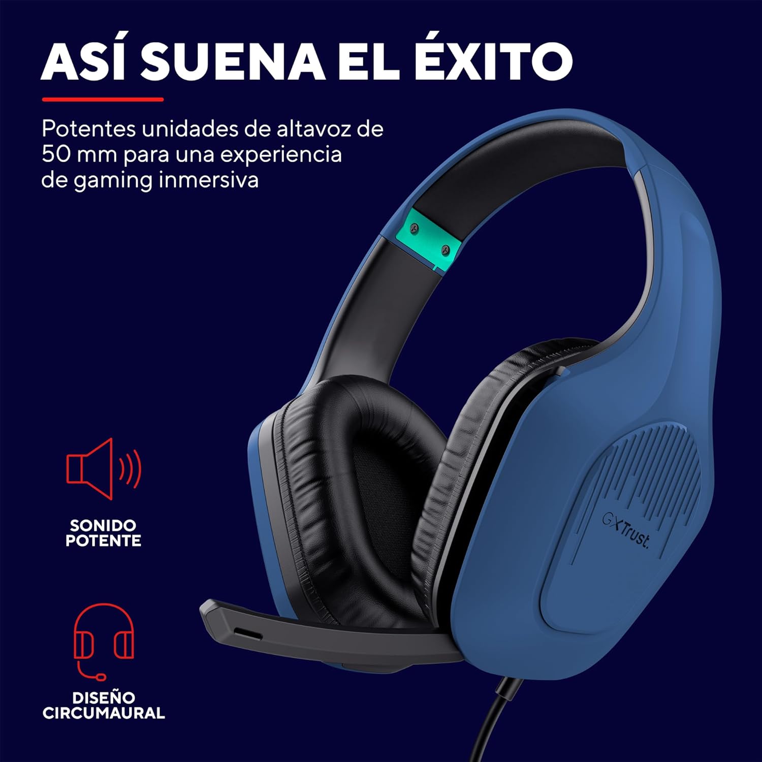Trust Gaming GXT 415B Zirox Ligeros Cascos Gaming con Drivers de 50 mm para PC, Xbox, PS4, PS5, Switch, Mobile, Conexión 3.5 mm, Micrófono Plegable, Auriculares Over-Ear con Cable 2m – Azul – ¿vale la pena?
