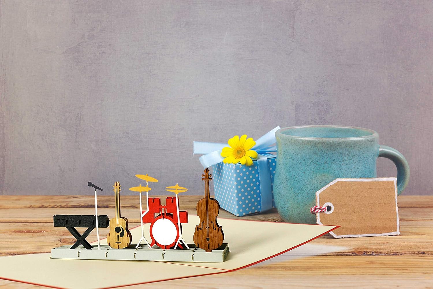 Diese-Klappkarten Tarjeta cumpleaños 3D – Tarjeta cumpleaños original 15 x 20 cm con desplegable – Tarjeta felicitación con sobre – Amantes de la Música – ¿vale la pena?