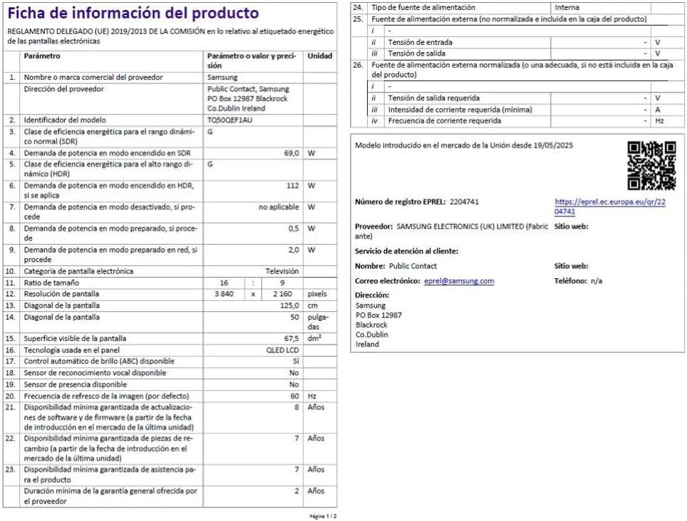 - Número de modelo del producto: TQ50QEF1AUXXC