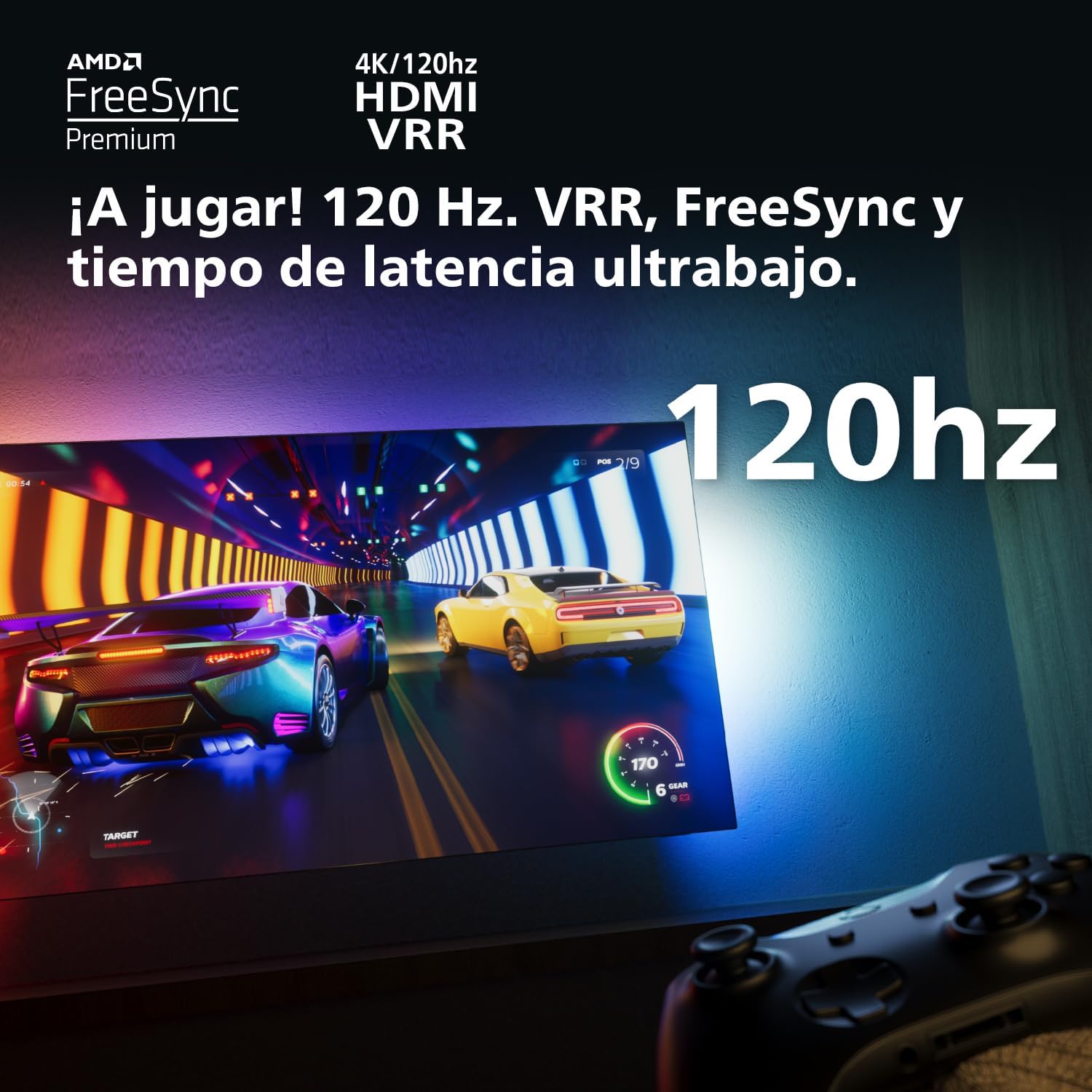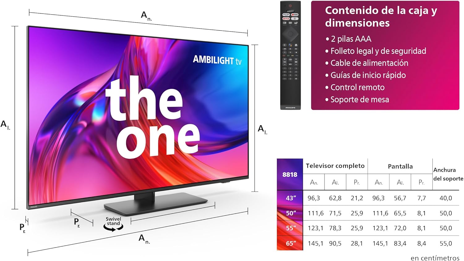 AMBILIGHT INMERSIVO: Disfrute de un impresionante espectáculo de luces con la tecnología Ambilight con funciones Ambilight+hue, modo adaptable a la pared, modo lounge, modo de juego, Ambilight Música y AmbiSleep.