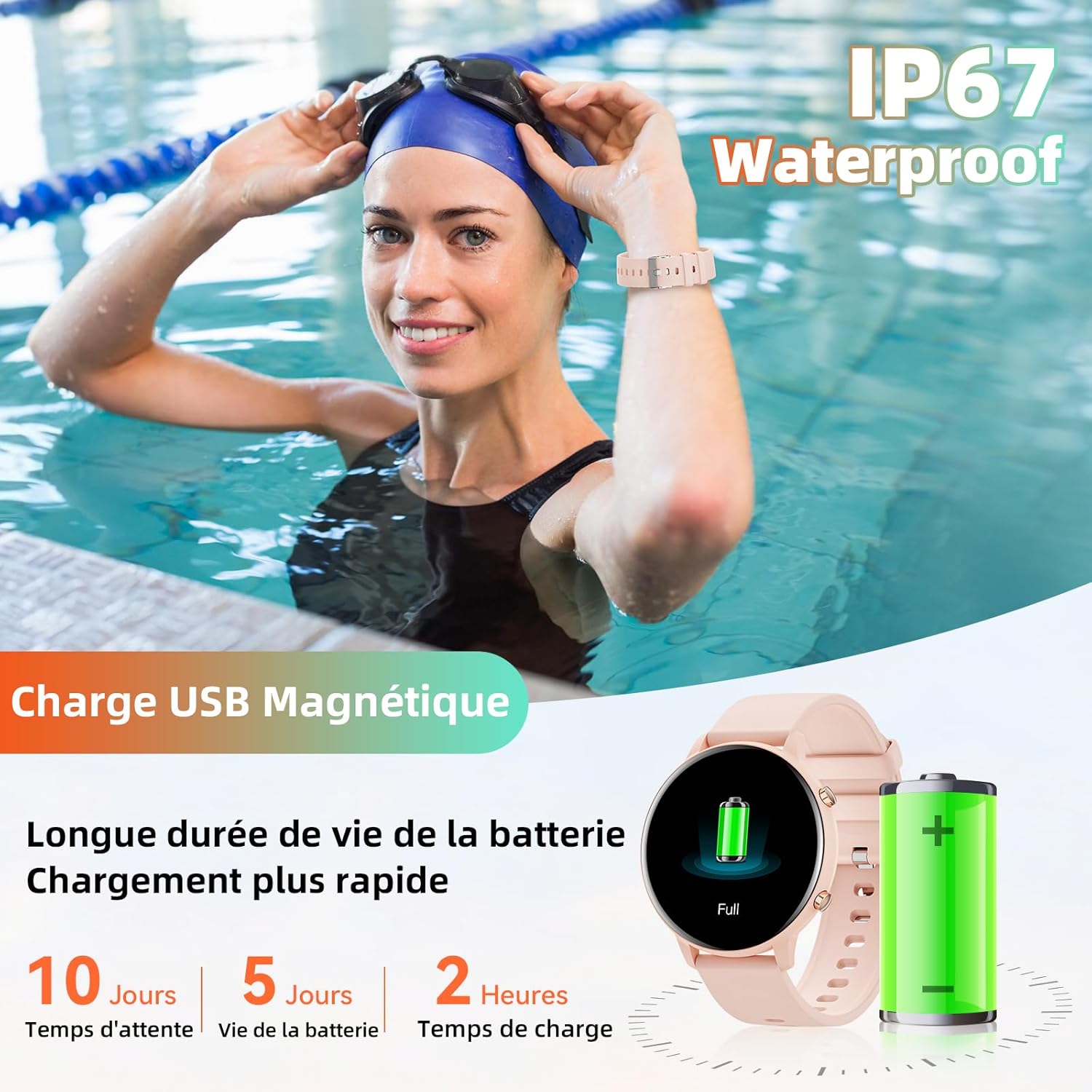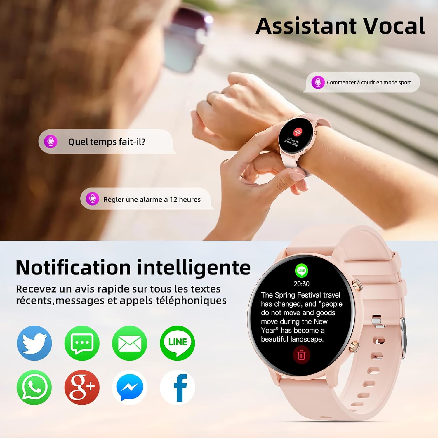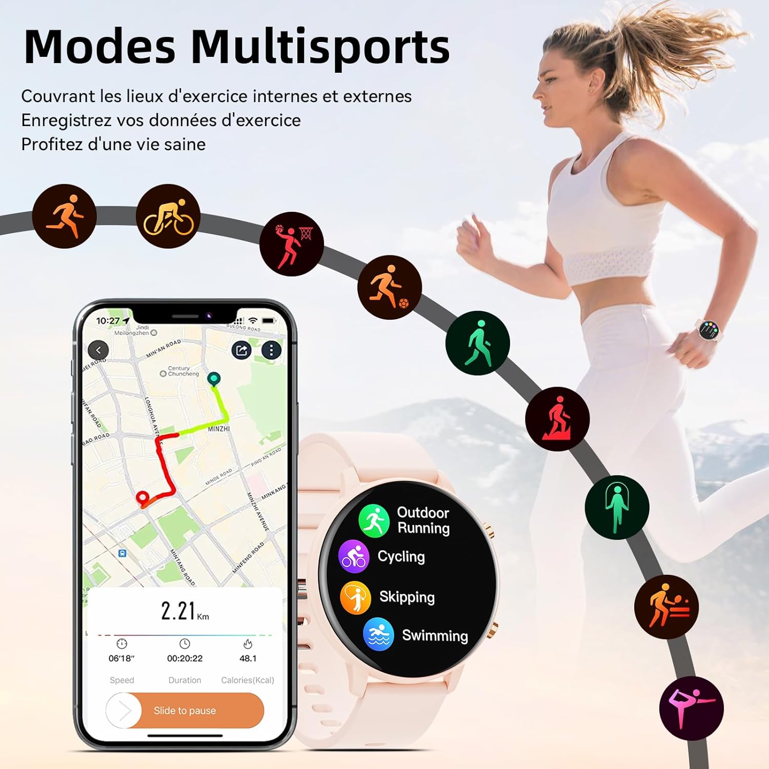 El Hwagol Reloj Inteligente Hombre Mujer es un smartwatch con una pantalla táctil de 1.39 pulgadas que muestra imágenes de alta calidad y una navegación fluida. Este reloj cuenta con modos multideportivos para hombres y mujeres, registro y seguimiento de datos de ejercicio, seguimiento de frecuencia cardíaca, oxígeno en la sangre y calidad de sueño, entre otras funciones útiles. Además, es resistente al agua y compatible con la mayoría de los smartphones.