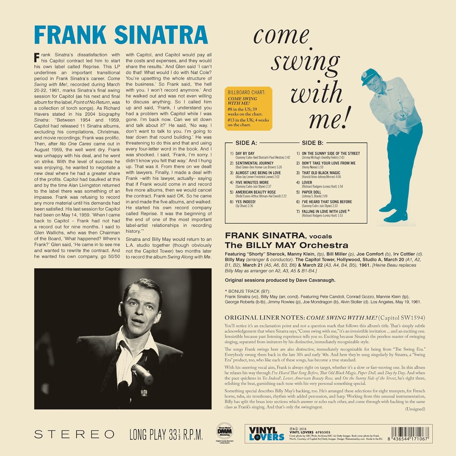 En cuanto a la descripción del producto, «Come Swing With Me! + 1 Bonus Track!» es un álbum imprescindible para cualquier colección de música swing. Con la voz inconfundible de Frank Sinatra y los arreglos musicales de alta calidad, este disco te transportará a la época dorada de la música.