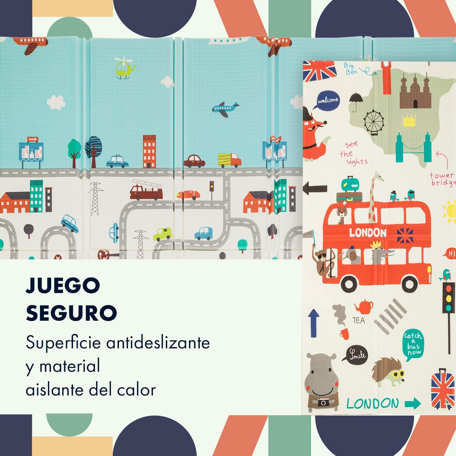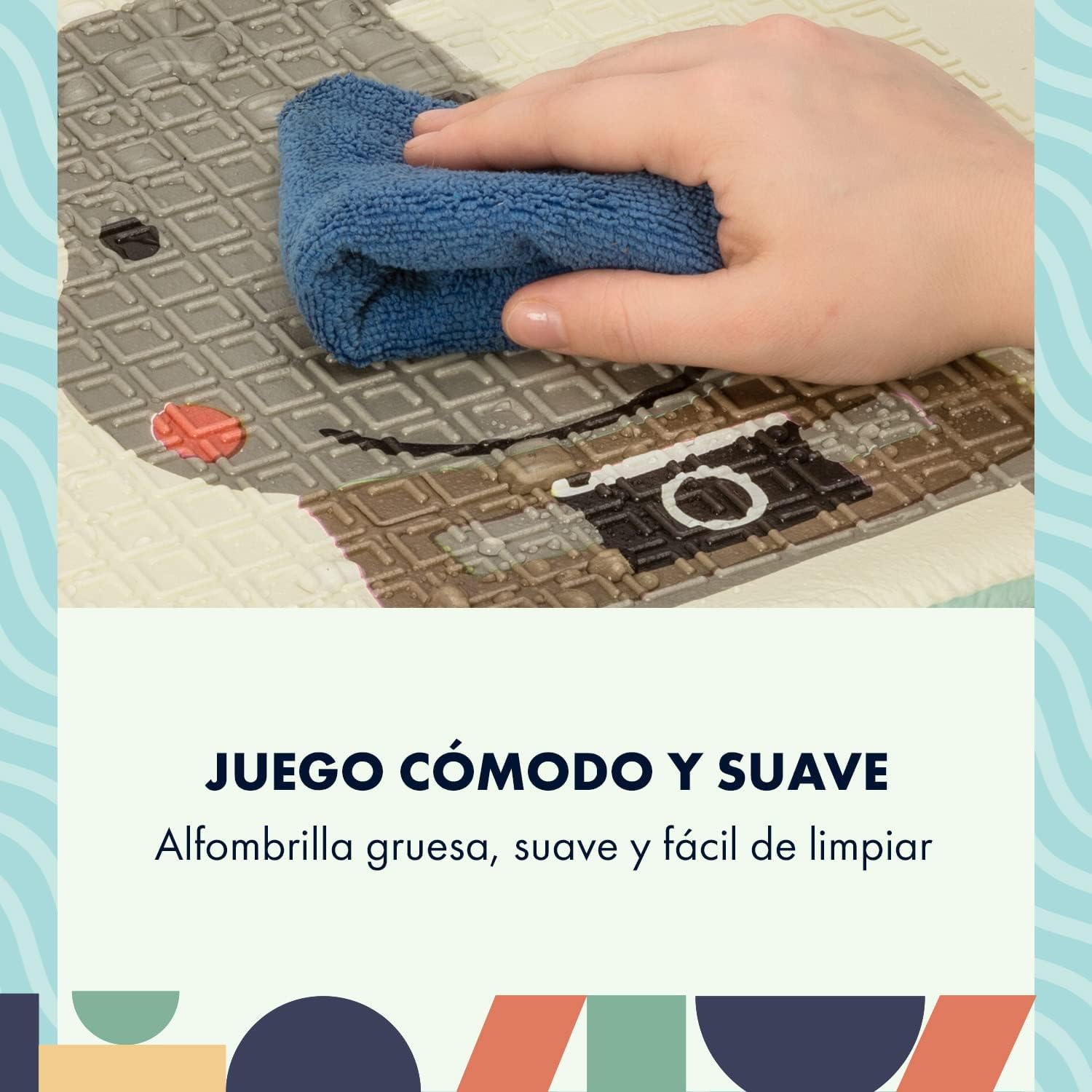 A diferencia de las alfombras de espuma de EVA, la espuma XPE es inodora, libre de formamida y ftalatos y libre de BPA. Ideal en su zona de juegos para amortiguar las caídas cuando el bebé empieza a gatear y a caminar. Gracias a su diseño antideslizante, nuestra alfombra es perfecta para aprender a caminar. Estimula la motricidad y la imaginación de tu hijo con sus dos diseños diferentes. Esterilla de juego impermeable fabricada en espuma XPE, fácil de limpiar con una esponja y agua. Multi-uso – transporte y almacenamiento fácil vestuario, exterior, interior, jardín, yoga, picnic, alfombras de salón. El diseño impreso en la parte posterior del producto puede ser diferente.