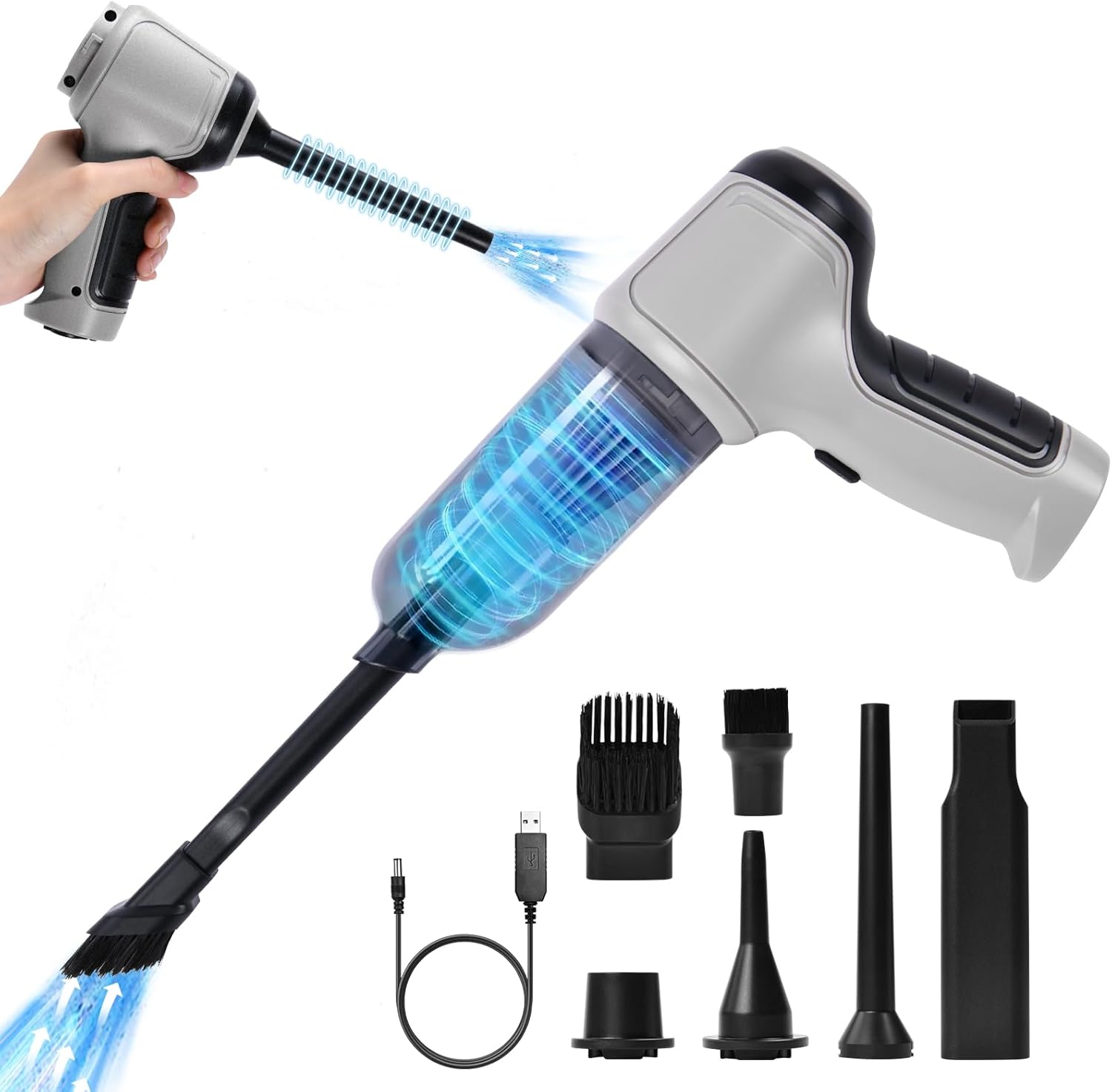 Además, su diseño ligero y ergonómico la hace fácil de manejar y transportar, permitiéndote limpiar sin esfuerzo en cualquier lugar. Viene con múltiples accesorios, como boquillas largas, boquillas de cepillo y boquillas de succión, que te ayudarán a limpiar rincones difíciles de alcanzar y diferentes tipos de superficies.