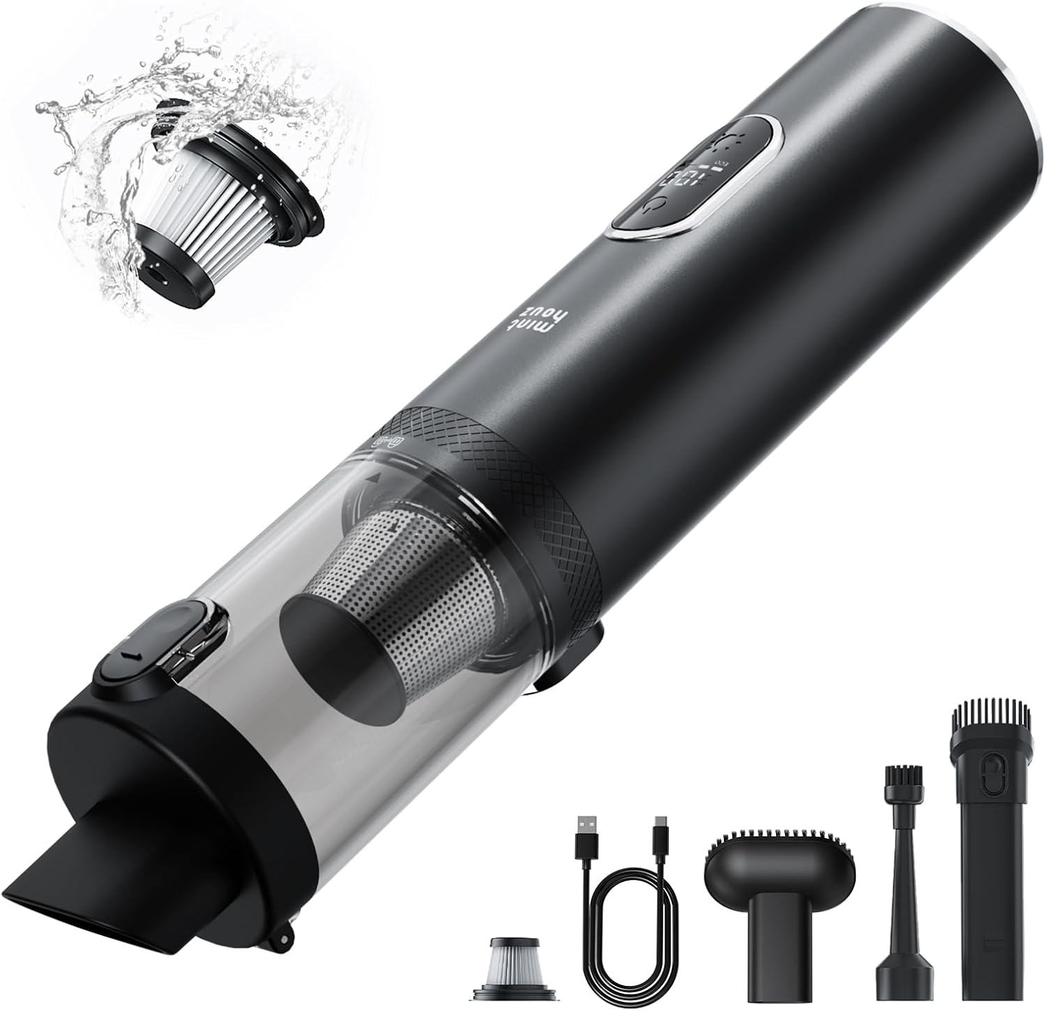 Viene con una variedad de accesorios para adaptarse a diversas necesidades de limpieza, como una boquilla para hendiduras y una boquilla con cepillo. También cuenta con una luz LED incorporada para iluminar áreas oscuras y garantizar una limpieza a fondo. Su batería de 7500mAh proporciona hasta 35 minutos de funcionamiento continuo.