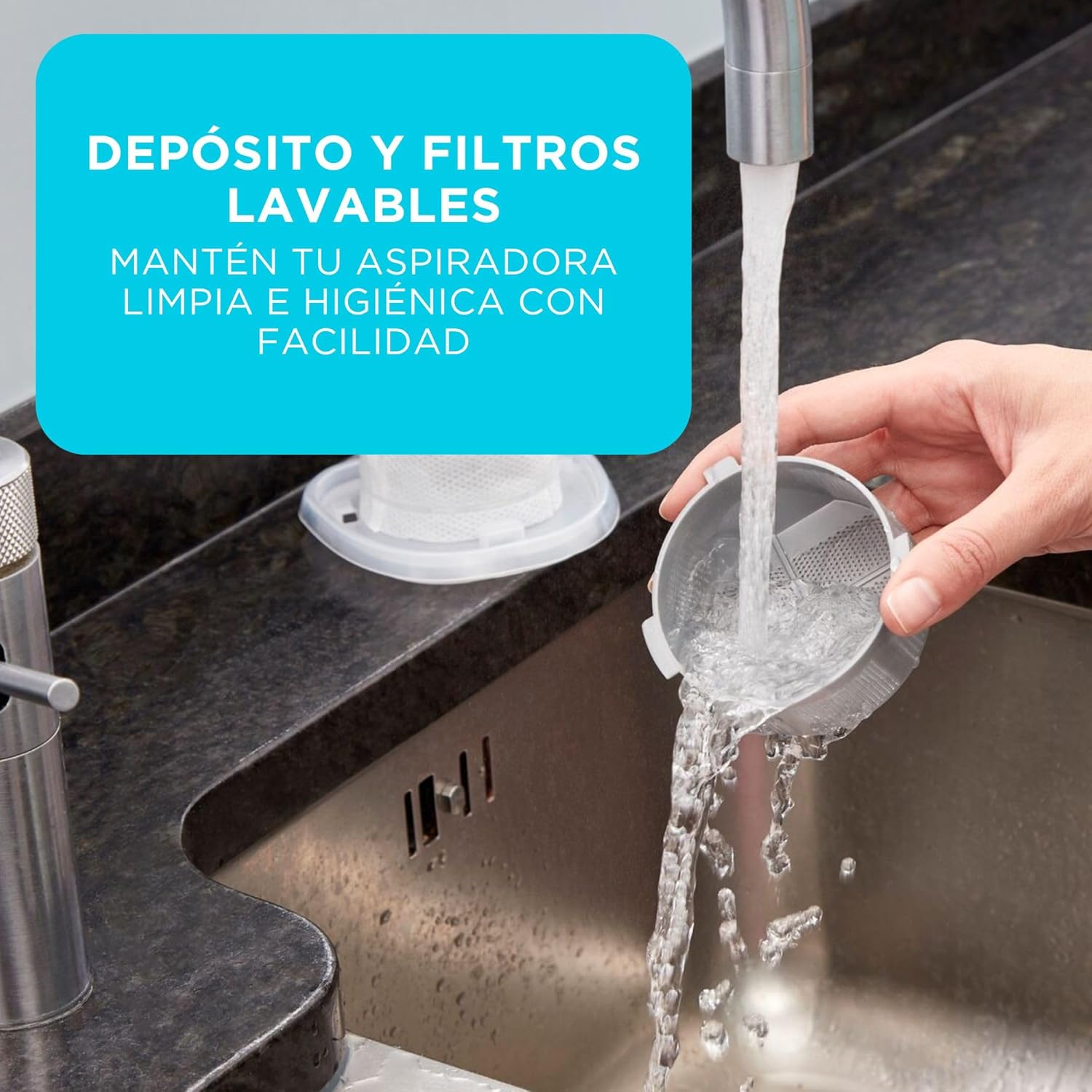 | Recipiente y filtros removibles y lavables| |