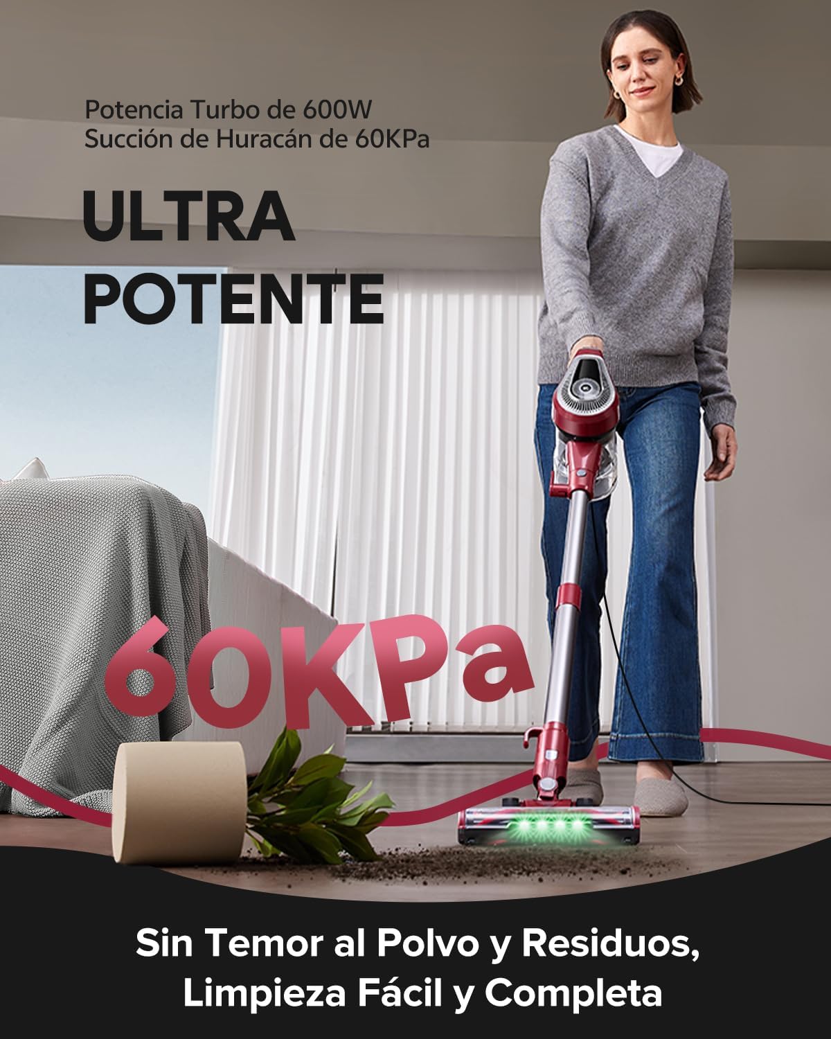 Potente succión de 60KPa Puede resultar pesada para algunas personas