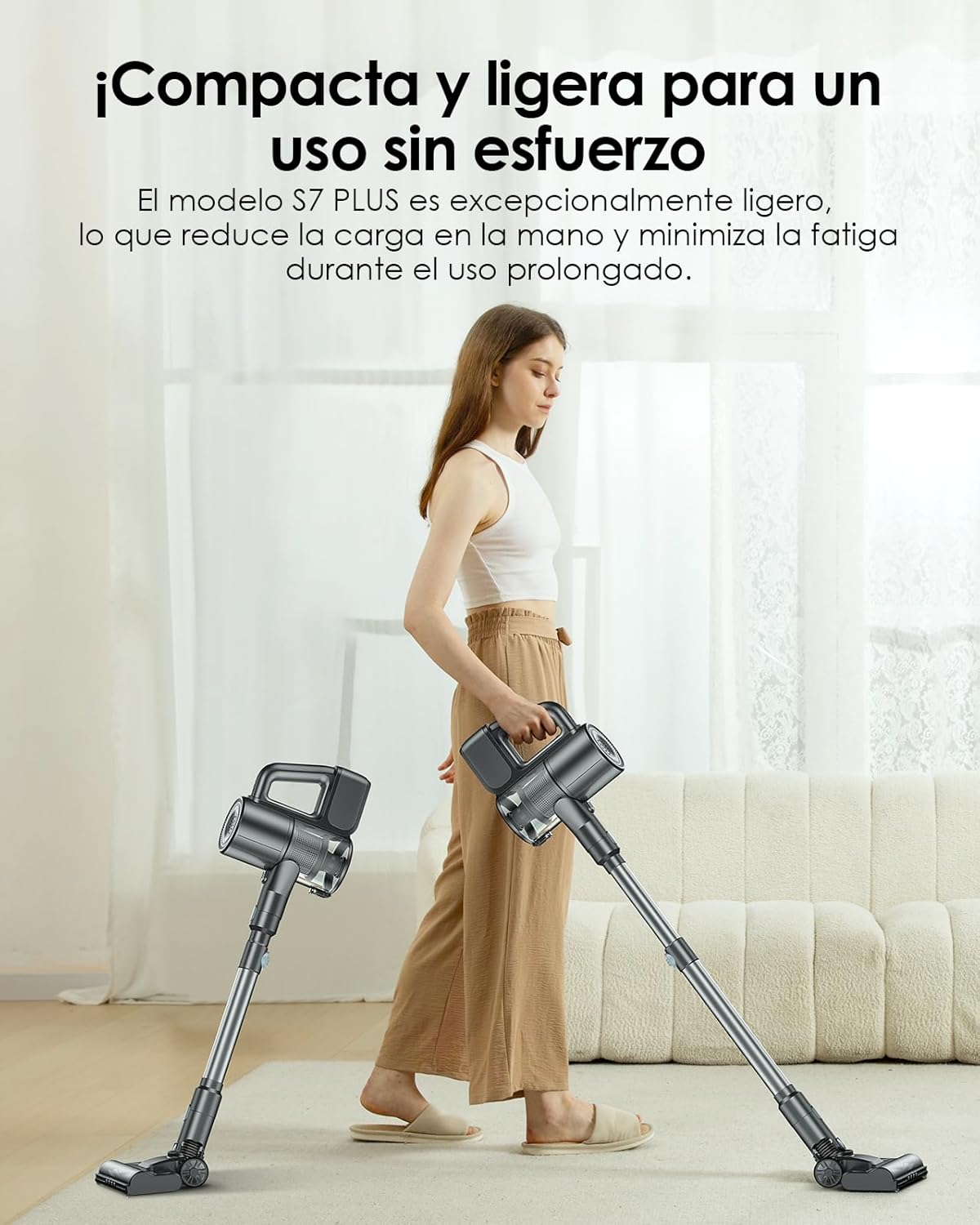 Con un diseño ultraligero y autónomo, esta aspiradora es fácil de manejar y almacenar, lo que la convierte en una excelente opción para cualquier hogar.