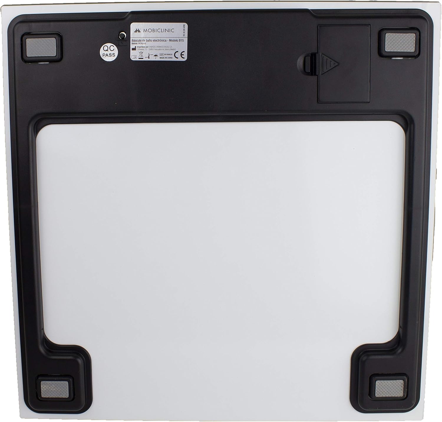 La báscula digital para baño de Mobiclinic es perfecta para la medición del peso corporal de cualquier miembro de la familia; cuenta con una pantalla LCD de 73 x 34 mm donde se mostrará la masa corporal del usuario en grandes números, lo que la hace perfecta para personas mayores o con problemas de visión. Esta báscula de peso tiene unas medidas de 30 x 30 x 1,75 cm y un peso de 1,5 kg por lo que podrá transportarla de un lugar a otro de la casa muy fácilmente. Además, gracias a su tamaño, también podrá guardarla en cualquier rincón del aseo o debajo de un mueble o estantería. La balanza digital de Mobiclinic tiene la función de encendido y apagado automático, lo que la convierten en un aparato eficiente y de bajo consumo. Por último, dispone de un aviso de sobrecarga para que el usuario pueda hacer un uso correcto del producto y un indicador de batería baja; además, este producto de pesaje funciona con una pila, por lo que no tendrá que preocuparse de cargar la batería cada cierto tiempo.