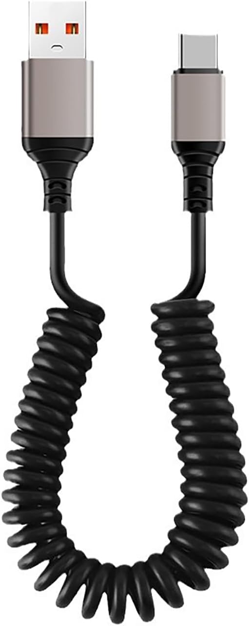 Cable de carga USB A a USB C: este cable de carga rápida USB C para teléfono móvil dispone de un diseño de resorte flexible que se estira fácilmente, rebote rápido y no se deforma fácilmente, mantiene tu coche limpio, ordenado y libre de enredos.