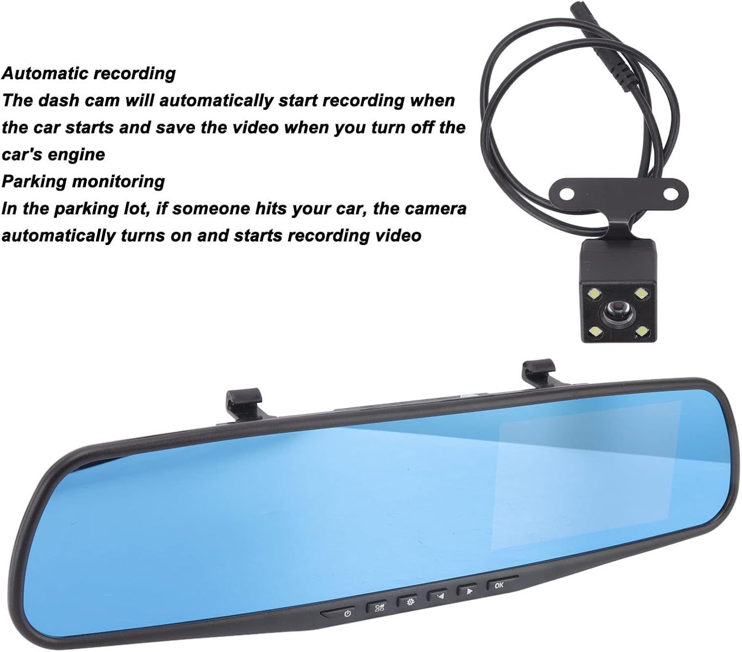 1x Espejo retrovisor Dash Cam1 x cable de alimentación del encendedor de cigarrillos