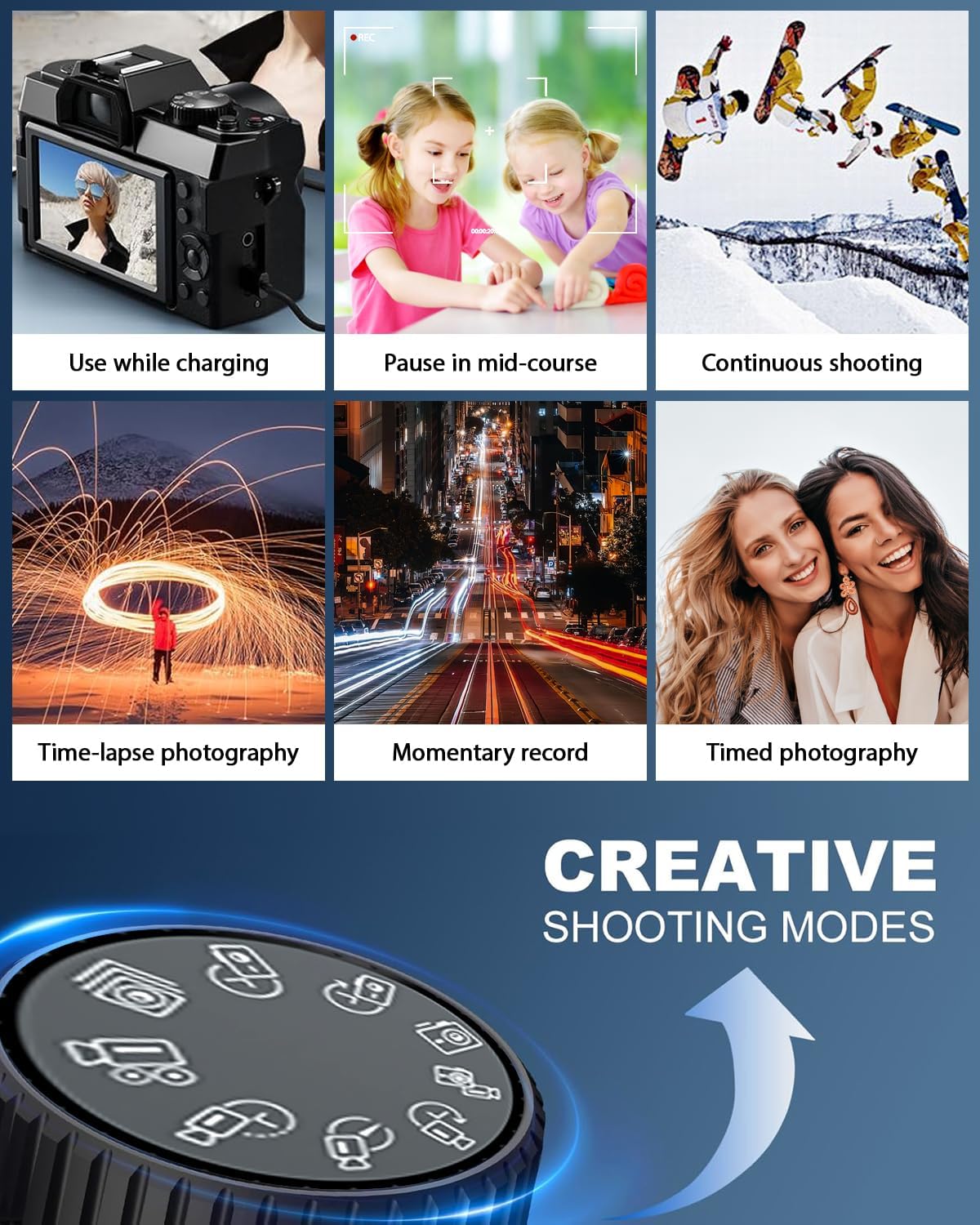 La cámara digital de Ade cuenta con impresionantes capacidades de video 4K y un modo de fotografía de alta resolución de 64MP que te permitirá capturar momentos increíbles con una claridad excepcional. Además, ofrece funciones como pausa de grabación, estabilización de imagen, flash, disparo continuo, temporizador automático, modo de belleza, detección de rostros y filtros para crear fotografías más interesantes y atractivas.