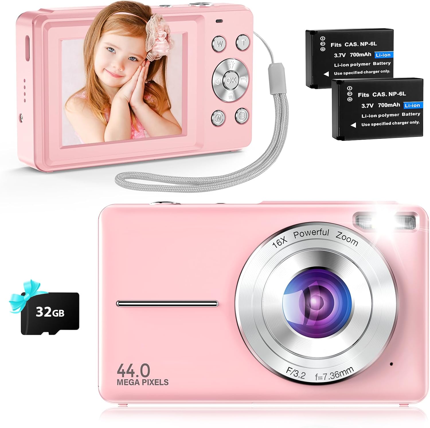 Cámara Digital Cámara De Fotos Compacta De 44MP con Video HD 1080P, Tarjeta De 32GB, Baterías Duales, Anti-Vibración para Niños, Adolescentes y Principiantes Rosa – ¿Vale la pena?