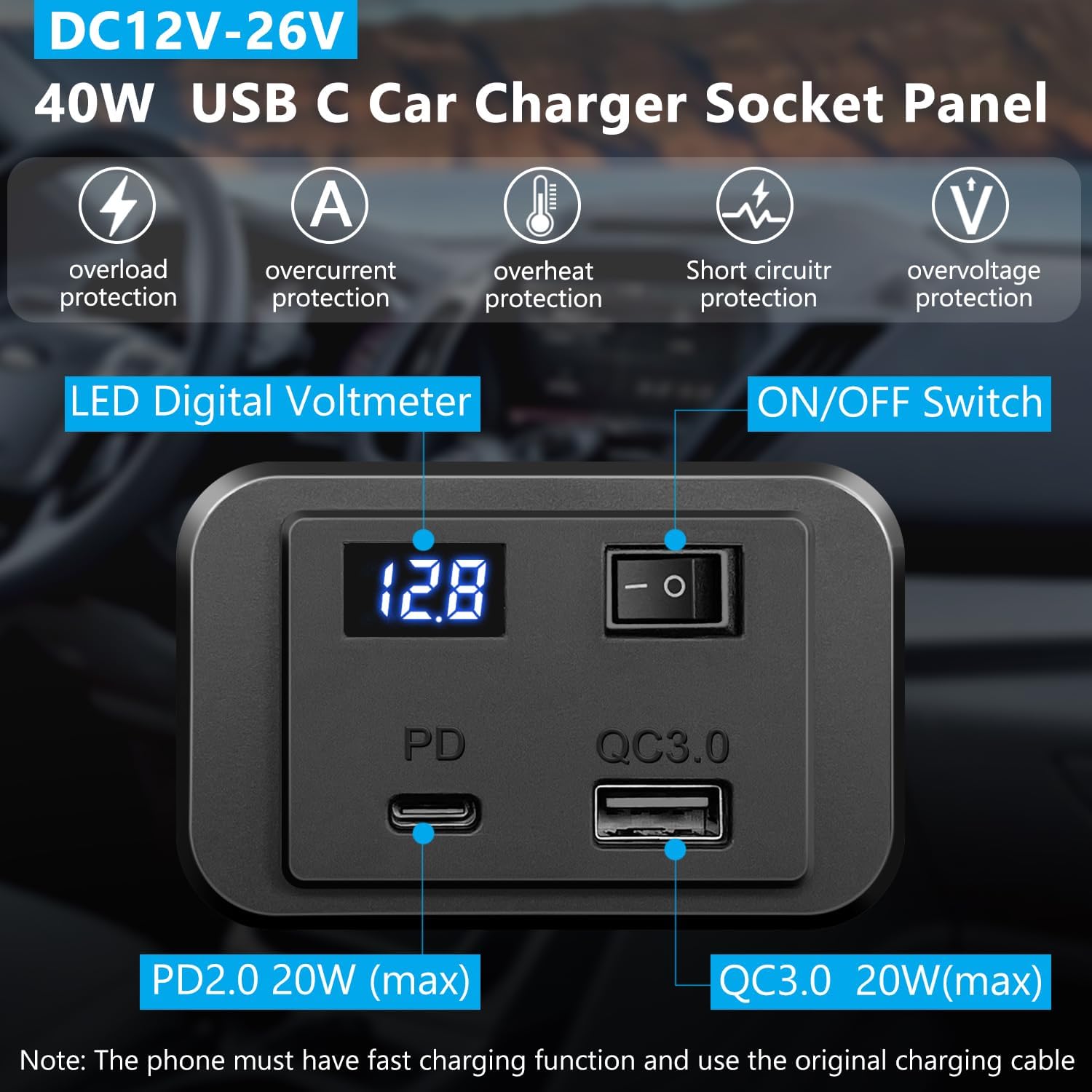 Para consultar el precio del producto «Hoembpn Toma USB C Coche 12V Cargador con Interruptor y Voltímetro LED 40W PD2.0 + QC3.0,12V-24V Panel de Enchufe Conector Mechero 4.8A USB Carga Adaptador para Barco Autocaravana Moto Camper Camion», simplemente haz clic en el botón a continuación.