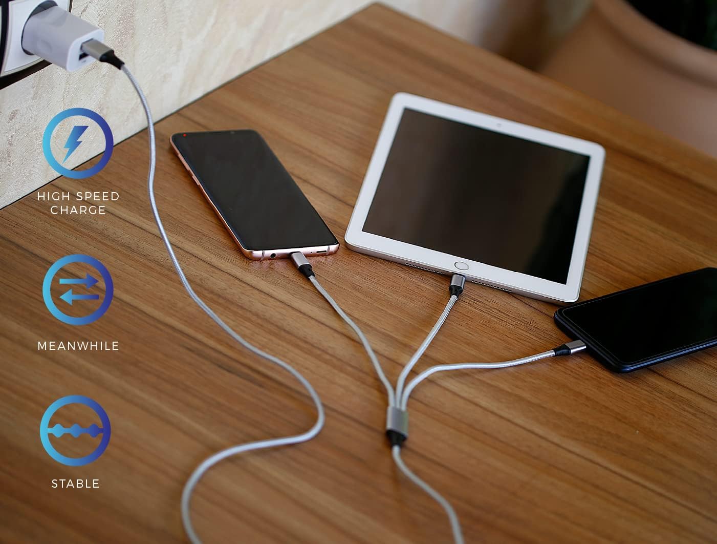 El MUTTO Cargador USB Multi 3 en 1 Universal es la solución perfecta para cargar todos tus dispositivos de forma rápida y eficiente. Con este cargador, podrás cargar tu iPhone, Samsung, Xiaomi y cualquier otro dispositivo con puerto USB C, micro USB o Lightning.