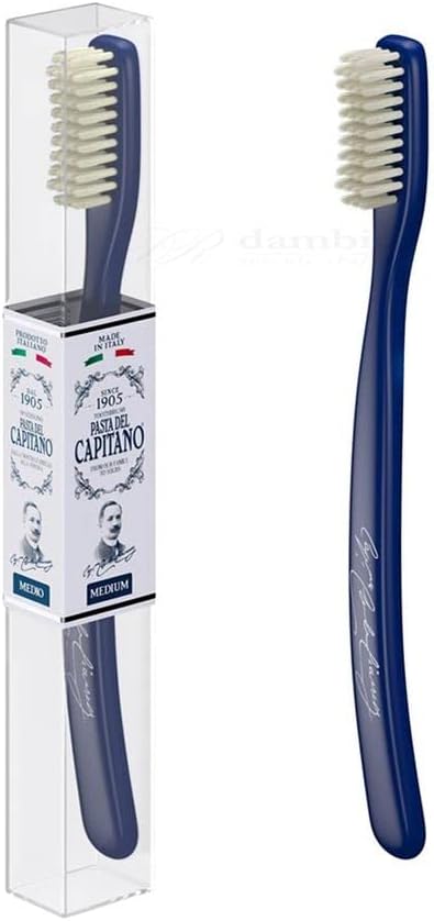 Para conocer el precio del producto Pasta del Capitano 1905, Cepillo de Dientes Vintage con Cerdas Medianas, Reproducción de la Versión Original, Llega a los Rincones Más Difíciles, 100% Made in Italy, Color Azul, solo tienes que hacer clic en el botón que encontrarás a continuación. ¡Descubre la calidad y tradición italiana en cada cepillado!
