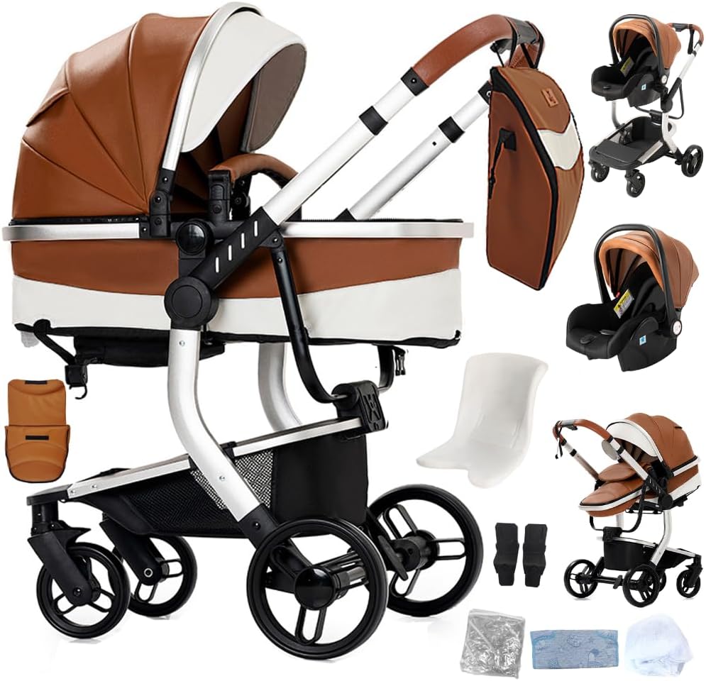 Cochecito 3 en 1 con portabebés, sistema de viaje, plegable, de lujo, con vista panorámica, incluye bolsa de mamá (Caqui) – ¿vale la pena?