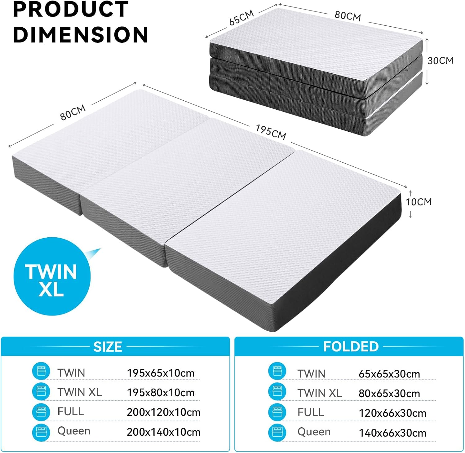 USO VERSÁTIL: El colchón plegable se puede utilizar como cama de invitados, colchón para niños, colchón de camping y colchón de viaje. La funda de cama con cremallera extraíble es fácil de limpiar y se puede lavar directamente en la lavadora.
