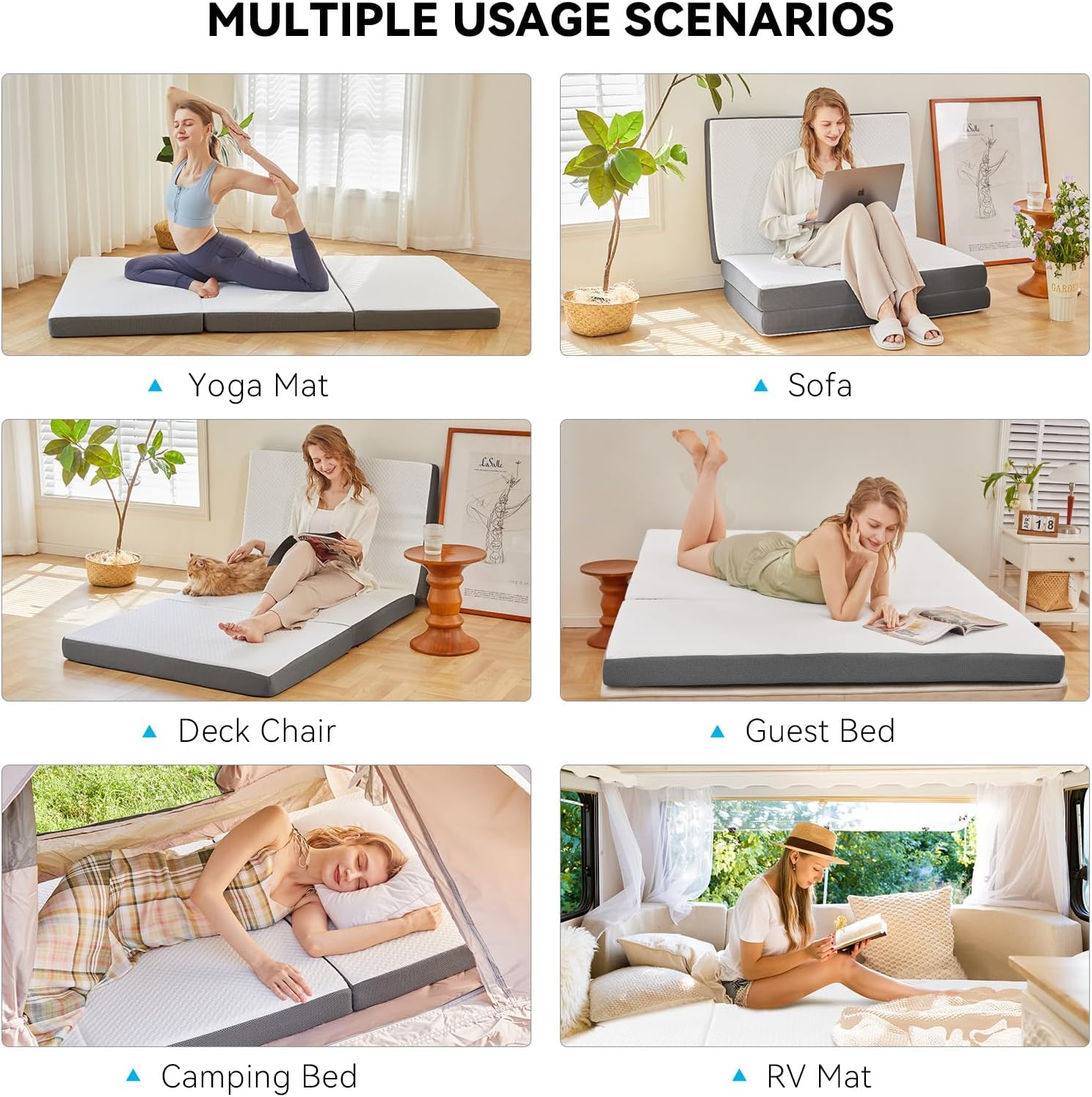 AHORRA ESPACIO: Si le falta espacio en casa o no tiene una cama supletoria para sus invitados, ¡este colchón plegable le ayudará a solucionar este problema! El colchón plegable no ocupará mucho espacio de almacenamiento.