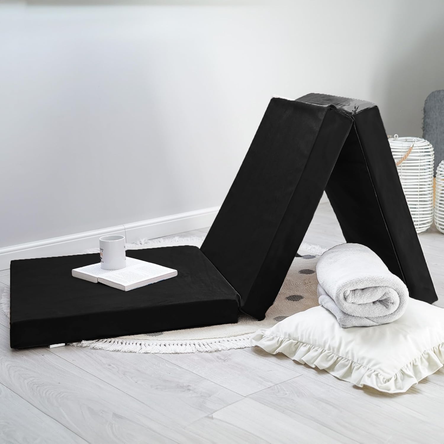 También como taburete: transforme el colchón plegable de una cómoda cama en un práctico taburete plegándolo.