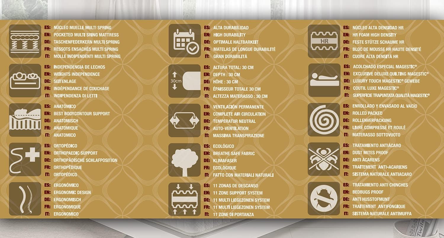 👌 SISTEMA MULTI PROGRESS : Se han distribuido las 9 capas estratégicamente para ofrecer una tumbada de firmeza progresiva. Máxima independencia de lechos: en ningún momento apreciarás los movimientos de tu compañero de sueños. 4 cm de Visco Confort: Material de máxima adaptabilidad y progresividad, compuesto Viscoelástica Alta Densidad + viscosoft rest foam + Tejido alta calidad ultra transpirable antiestático.