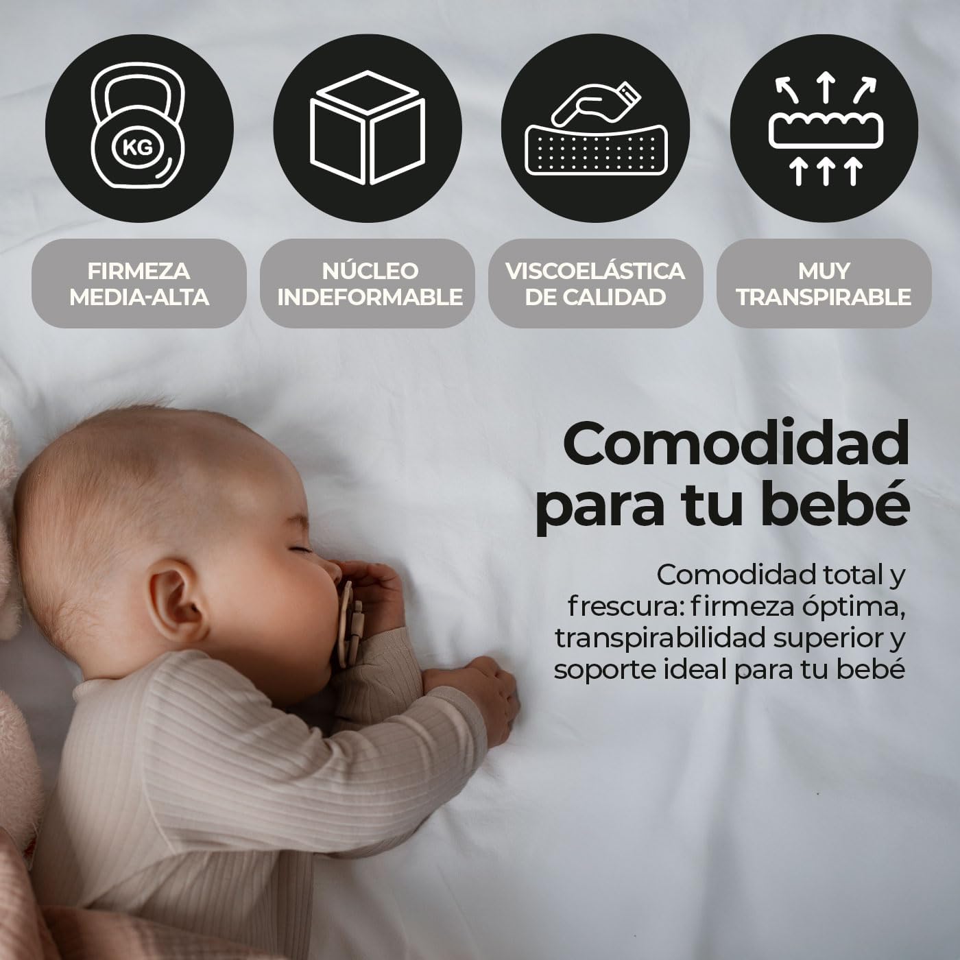 Para conocer el precio del producto Somnia Descanso – Colchón Viscoelástico para Cuna | Reversible | 60×120 | Cara Invierno/Verano | Antiácaros, Antibacterias e Hipoalergénico, puedes hacer clic en el botón que se encuentra a continuación. ¡Descubre todas las ventajas que este colchón puede ofrecerle a tu bebé!
