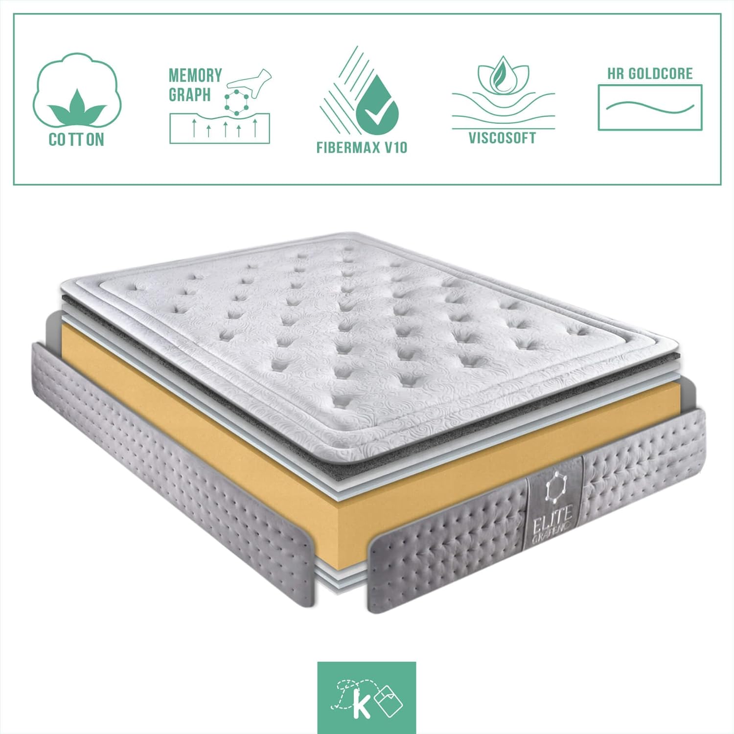 El Colchón Élite Viscografeno de Kamahaus es un colchón de alta gama diseñado para ofrecer confort y un buen descanso. Con una altura de ±30 cm, este colchón reversible cuenta con un sistema Extra-Relax compuesto por ViscoGrafeno con Gel frío, fibras FIBERMAX V10 y ViscoSoft. El tejido STRETCH de la cara de invierno y el TEJIDO 3D AIRFRESH BLANCO de la cara de verano permiten una circulación óptima del aire y evitan la acumulación de humedad.