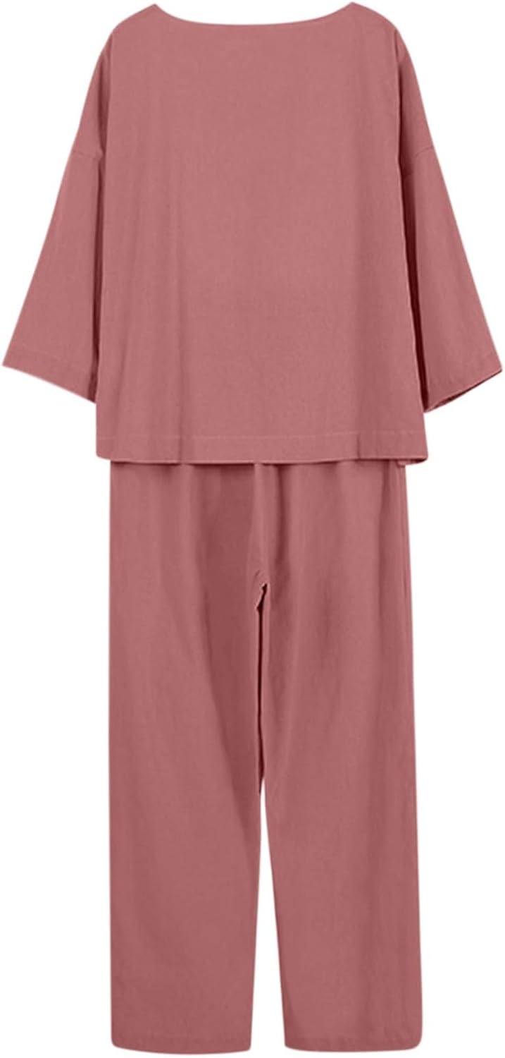 Conjunto de 2 piezas de algodón y lino para mujer de verano, mono elegante y suave, tallas grandes, manga corta, camisa y pantalones de pierna ancha, moda de gran tamaño, conjunto cómodo – ¿vale la pena?