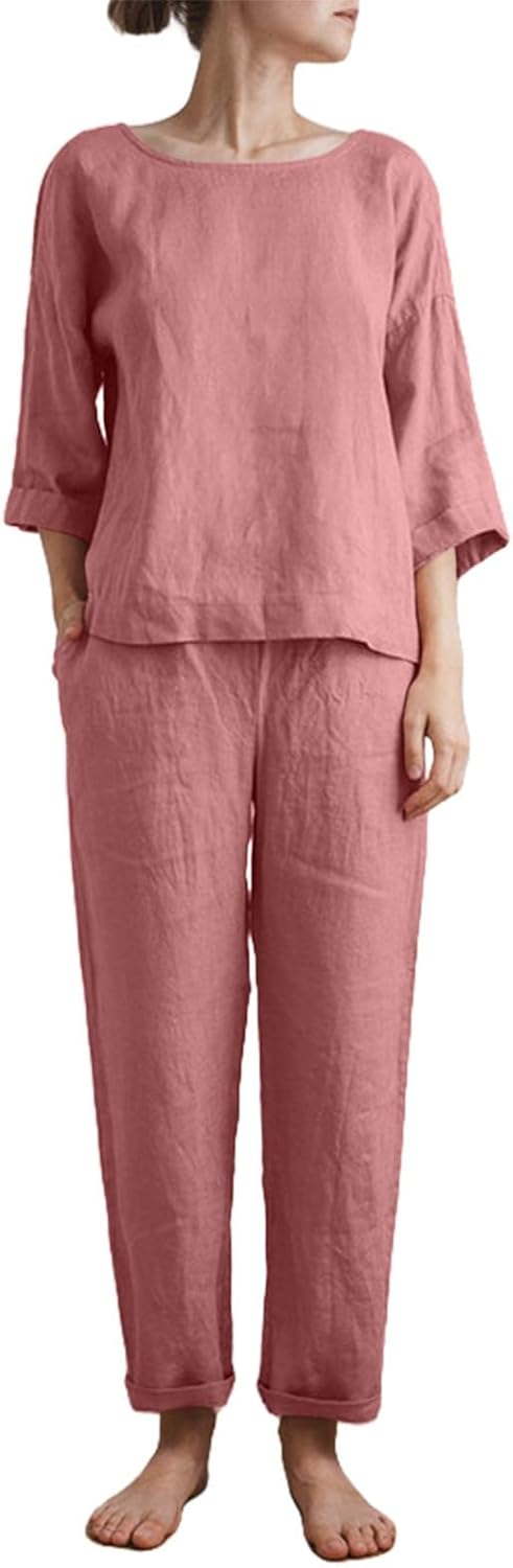 El conjunto de 2 piezas de algodón y lino para mujer de verano ha recibido una puntuación de 4.5 estrellas en Amazon, basada en las opiniones de los compradores.