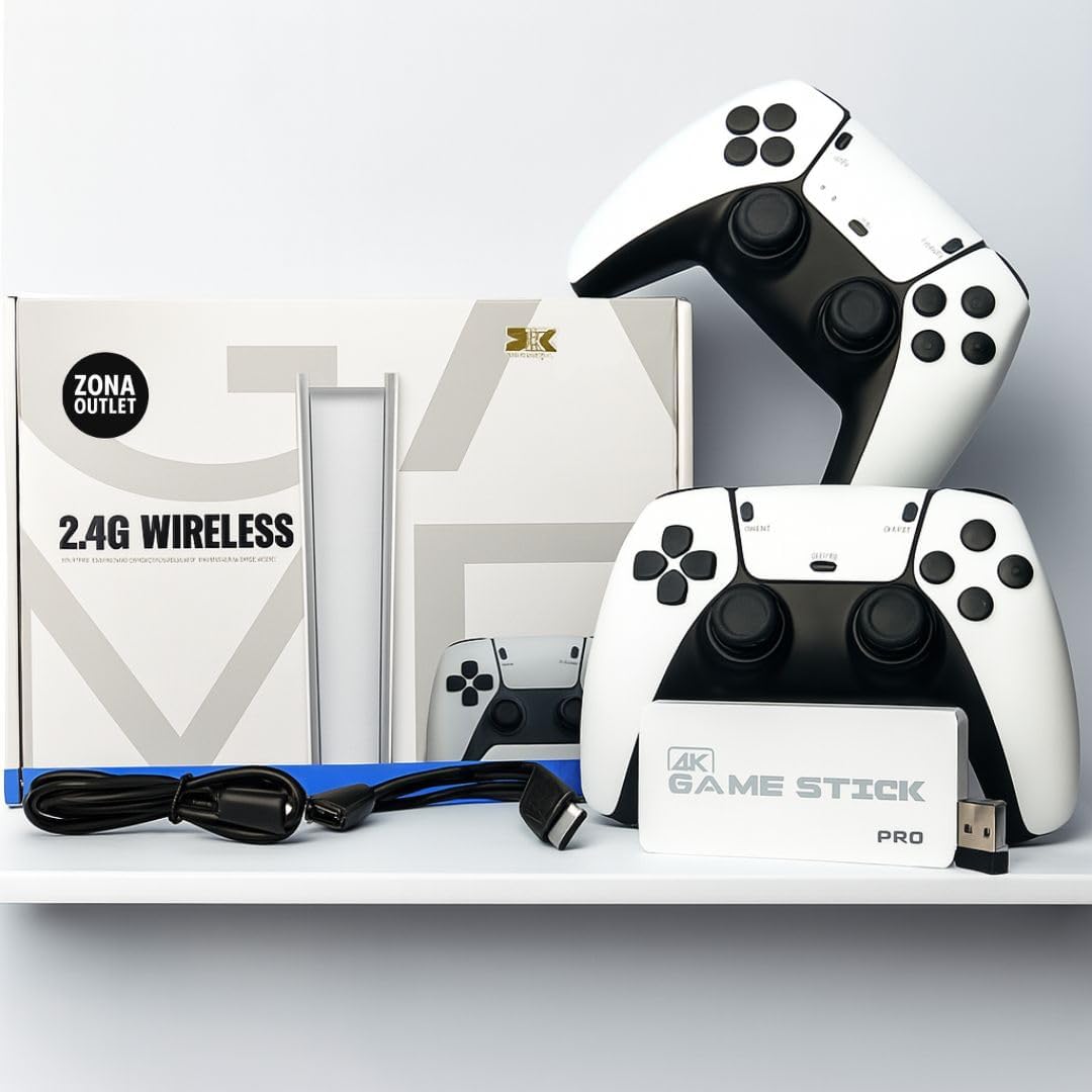 ATENCIÓN: PRODUCTO TOTALMENTE NUEVO EN SU ÚLTIMA VERSIÓN MEJORADA LIQUIDACIÓN DE STOCK DE TIENDA DE ELECTRÓNICA A PRECIO DE COSTE (PVP NORMAL 55€). SIN LARGAS ESPERAS, ENVIADO DESDE ESPAÑA POR ZONA_OUTLET. ¡ÚLTIMAS UNIDADES, APROVECHA SÓLO AHORA ESTA SÚPER OFERTA!. LA NUEVA CONSOLA RETRO PLUS ÚNICA CON MANDOS BLANCOS, 23 EMULADORES Y MÁS DE 20.000 JUEGOS 4K STICK HDMI ORIGINAL Y MEJORADA. ¡ÚLTIMA VERSIÓN 2025! ¡PINCHAR Y JUGAR: Ahora sin instalaciones ni complicaciones y sin necesidad de internet!: Tan fácil como enchufarla a una salida HDMI y a un USB de tu tele (incluye los cables), poner el canal HDMI, encender los mandos y… ¡a disfrutar de miles y miles de juegos! ✨ VUELVE A REVIVIR LA ERA DORADA DE LOS VIDEOJUEGOS: – ¡Diversión sin fin disfrutrando de más de 20.000 juegos! – Compacta, fácil de usar y ¡sin necesidad de internet!. – Calidad: Certificación UE. – ¡Nueva versión, única en el mercado: Ahora con 23 emuladores de consolas en un solo pincho HDMI! 💾 ¡Novedad: Ahora guarda y reanuda tus partidas donde las dejaste!. 🌈 Resolución ULTRA HD 4K y rendimiento y velocidad mejorados, ¡nada que ver con otras similares con juegos muy pixelados!. 🎁 MÁXIMA DIVERSIÓN SÓLO, EN FAMILIA O CON AMIGOS: 👨👩👧👦 Revive tu infancia y sorprende a los más jóvenes. 🎉 ¡Horas y horas de nostalgia y risas aseguradas! 📦 INCLUYE TODO LO NECESARIO: 🕹️ Consola Game Stick 4K. 🎮 2 mandos inalámbricos blancos, la mayoría de los juegos aceptan jugar a 2 jugadores. 🔌 Tarjeta de memoria Micro SD DE 64GB con más de 20.000 juegos grabados (ya va insertada dentro del stick). 🔌 Cable USB de alimentación. 🔌 Cable HDMI. 🔌 Conector USB receptor señal de los mandos. 📖 Manual ⚙️ ESPECIFICACIONES TÉCNICAS: CPU Cortex‑A7 Dual Core, hasta 1,0 GHz. Memoria RAM:DDRIII 256 MB. Almacenamiento: 64 GB (ampliable hasta 128 GB TF). Conexión inalámbrica: 2,4 GHz, alcance de 8–10 m. Salida de vídeo: HDMI 4K Ultra HD (compatible 1080p/720p). Entrada de voltaje: 5V/1A/2A/0,5A. Fuente de alimentación mandos: 2 pilas AAA (no incluidas). 🛒 ¡ÚLTIMAS UNIDADES EN OFERTA!: 🔥 Compra ahora la versión original y evita copias baratas que fallan. 🏆 Calidad, garantía y la mejor experiencia retro te esperan.