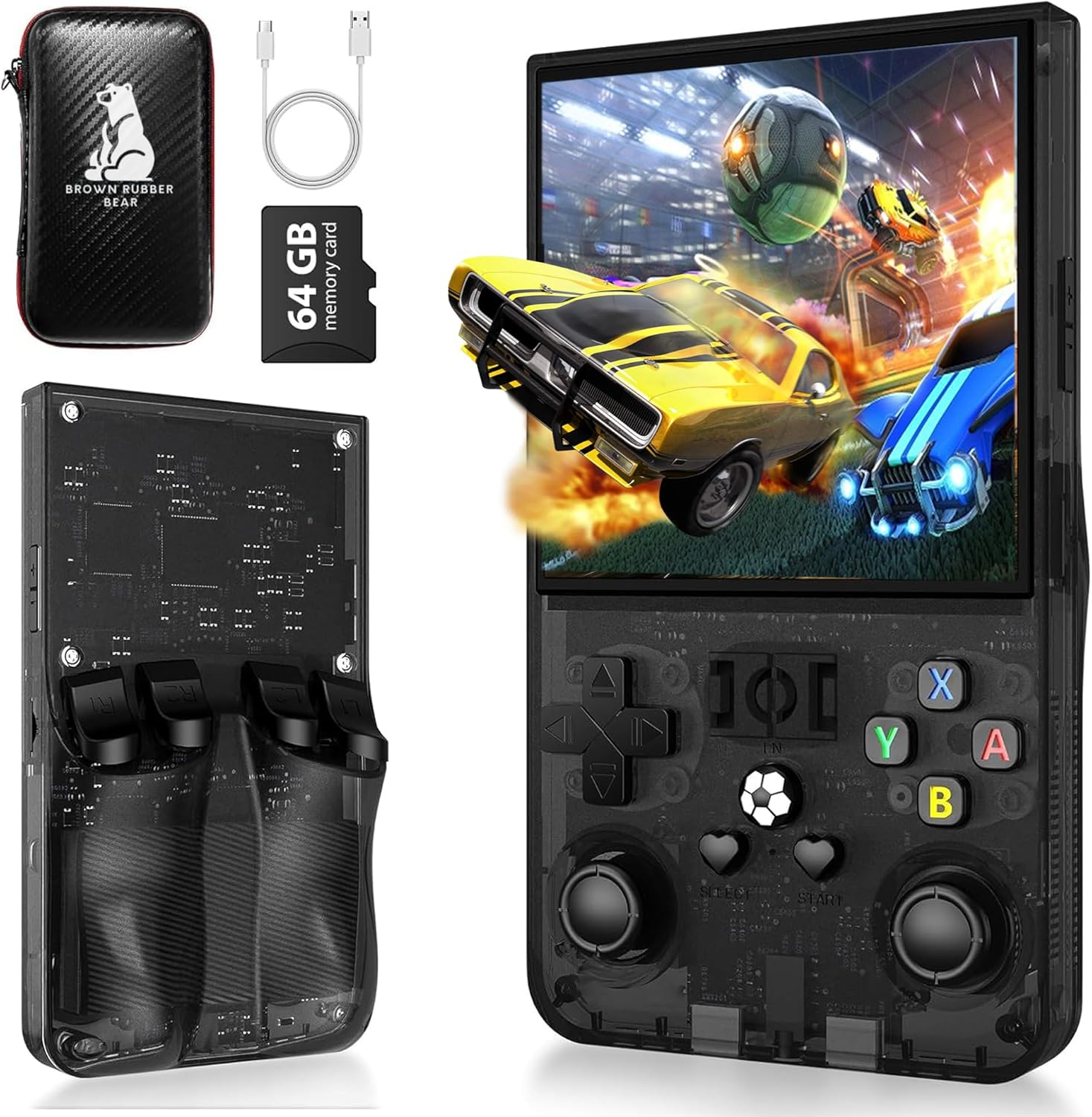 Brown Rubber Bear-R36MAX Consola Retro Portatil con +15000 Juegos Preinstalados-Videoconsola R36S Pro con Tarjeta SD 64GB-Mini Consola Retro con Funda Protectora y Cargador-Maquinita de Videojuegos – ¿vale la pena?