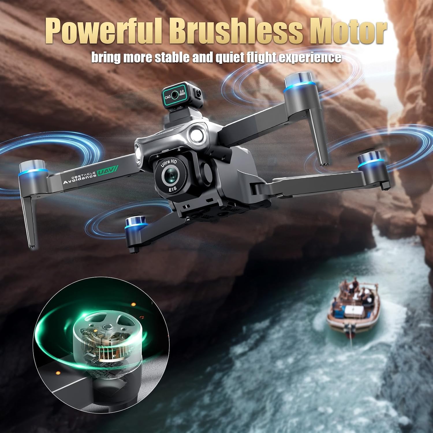 MOTOR SIN ESCOBILLAS: Dron GPS seguimiento para adultos con camara utiliza un potente motor sin escobillas, dron es mucho más resistente al viento, vuelo es más estable, disipa el calor más rápido, y que aumenta la vida útil del dron de control remoto