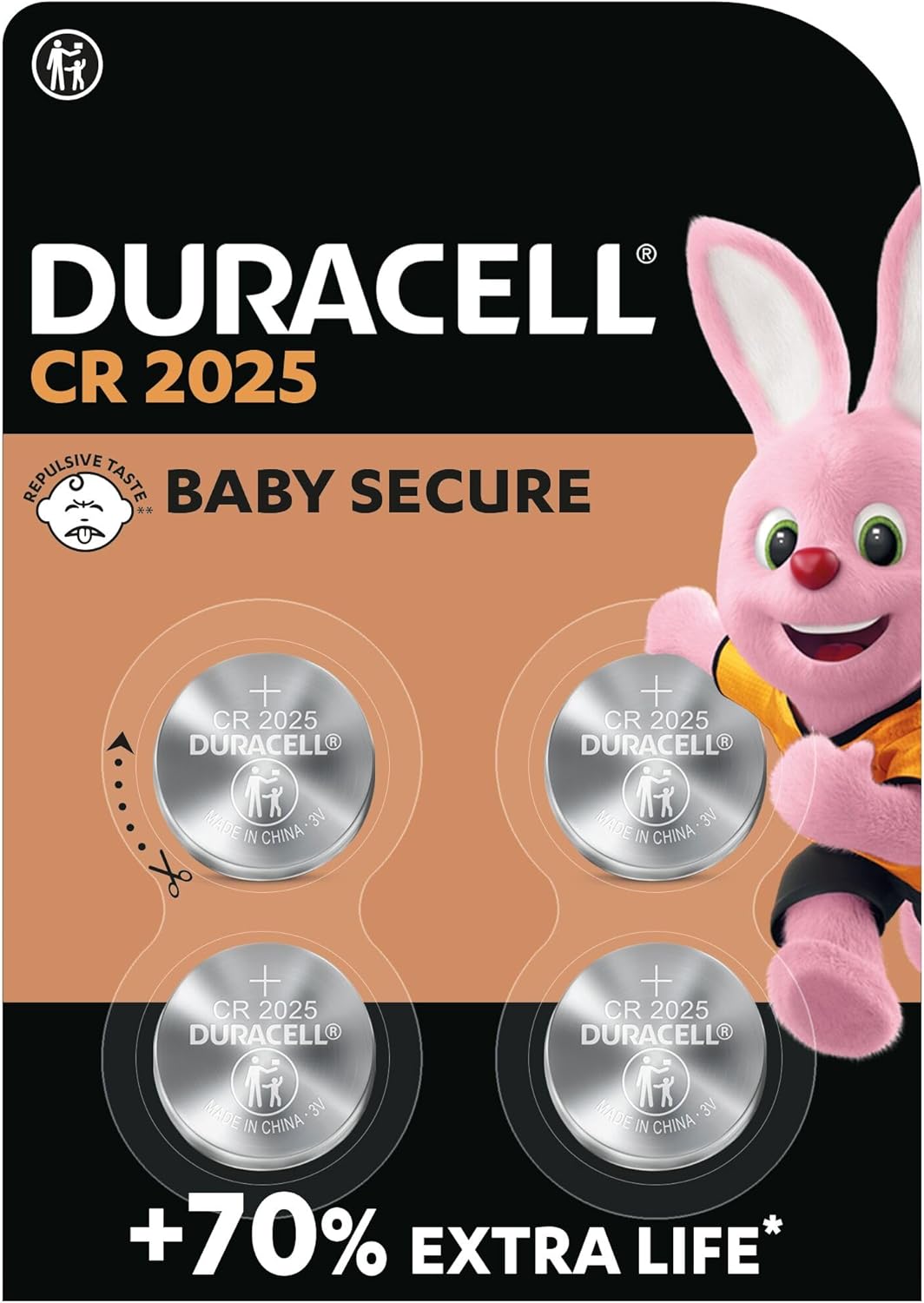 TECNOLOGÍA BABY SECURE: Incorpora una capa no tóxica de sabor amargo en forma de aro con Bitrex, aplicada en la parte posterior de la pila para disuadir a niños y bebés de ingerir el producto.