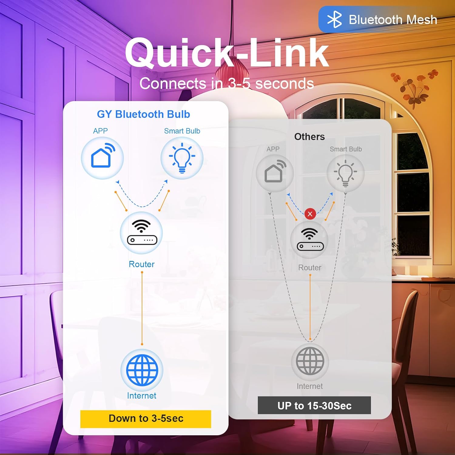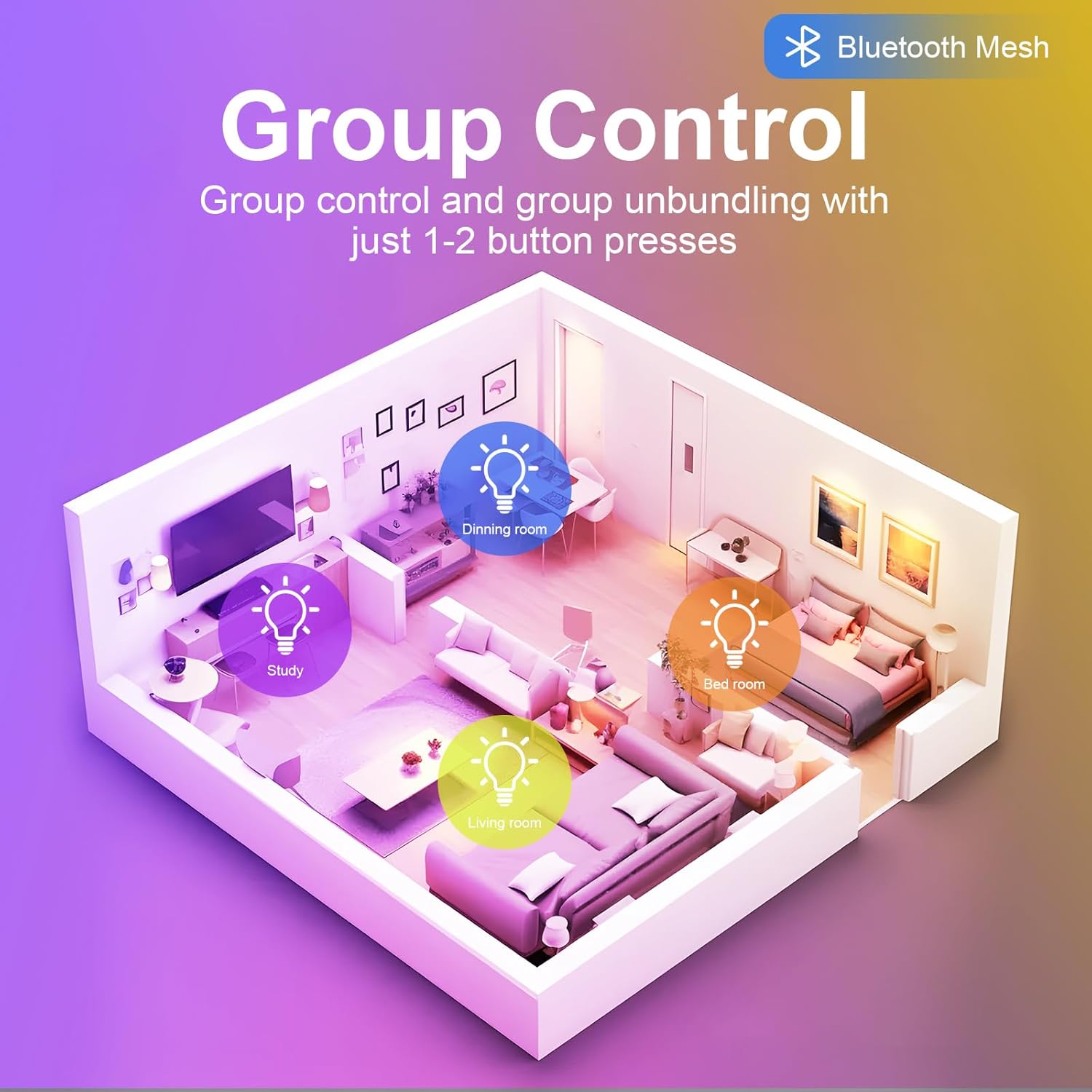 Gracias a su compatibilidad con las aplicaciones Smart Life y TUYA, podrás controlar las luces desde tu smartphone o tablet, ajustando la iluminación según tus necesidades y preferencias. Además, su conexión Bluetooth Mesh permite una comunicación estable y eficiente entre los diferentes focos, garantizando un funcionamiento sincronizado y sin fallos.
