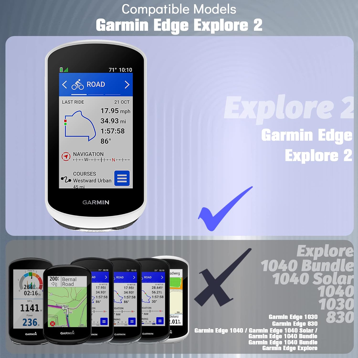 | Protección total para tu dispositivo de navegación | No es compatible con Garmin Edge Explore (1) |