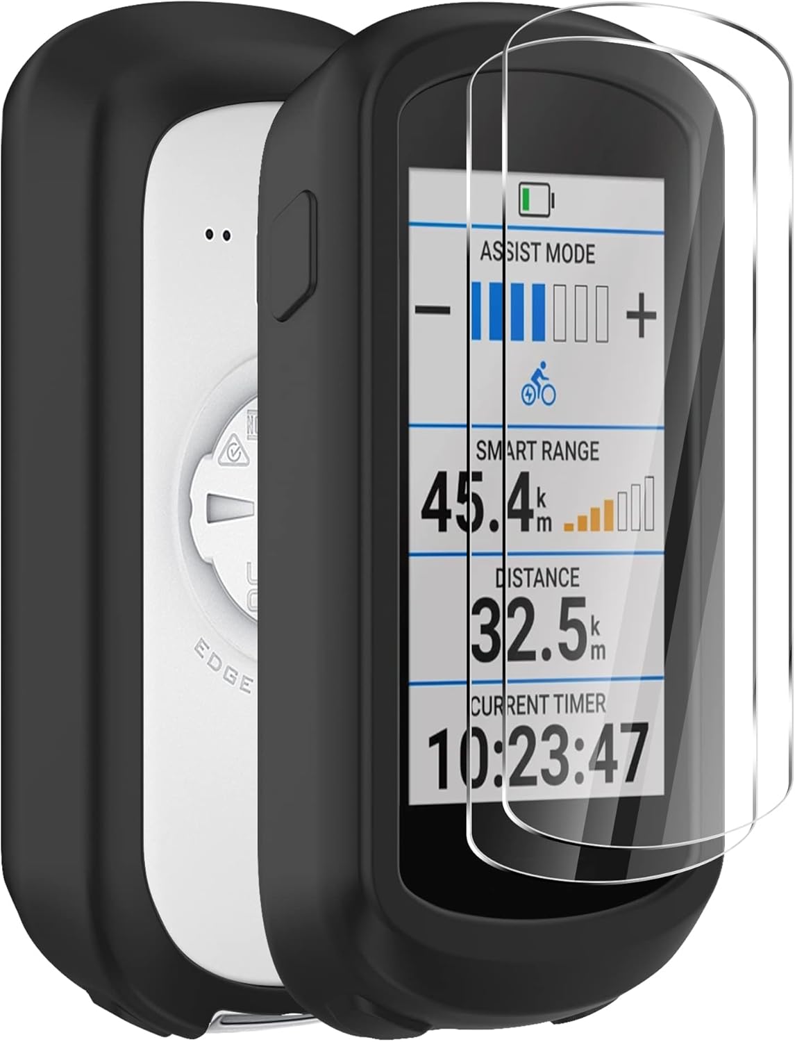 Ermorgen – Carcasa de silicona compatible con Garmin Edge Explore 2 + 2 protectores de pantalla de vidrio templado, carcasa de silicona flexible, protección a prueba de golpes, todo incluido, color negro