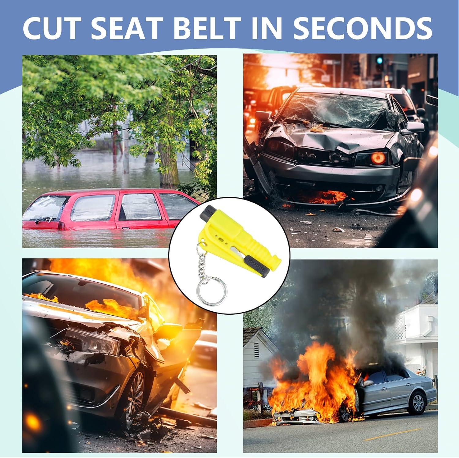 - Concebido para salvar vidas, nuestro llavero combina la funcionalidad de rompeventanas y cortador de cinturón de seguridad 3 en 1 en un dispositivo compacto y duradero. La característica de martillo rompecristales de emergencia está específicamente diseñada para romper las ventanas del coche rápidamente, permitiendo una salida rápida, mientras que la hoja integrada corta rápidamente los cinturones de seguridad para prevenir el atrapamiento tras un accidente.
