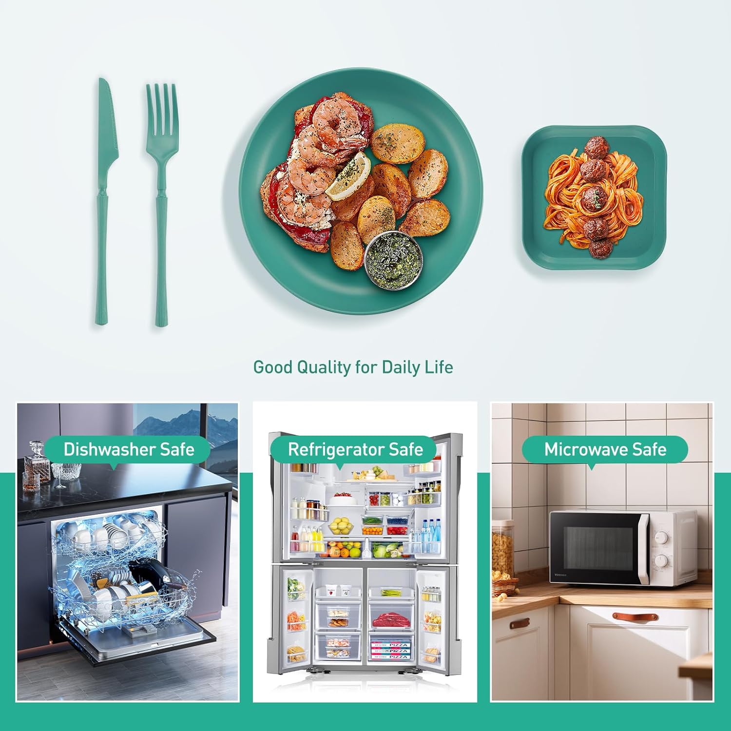 🌟**Reutilizable e irrompible:** El juego de vajilla para picnic está hecho de material PP de grado alimenticio, reutilizable, no tóxico y resistente. No se agrieta ni se rompe como la porcelana o la cerámica, lo que la convierte en una buena alternativa a la vajilla tradicional. Puede utilizarlo de forma segura para almacenar alimentos y bebidas.