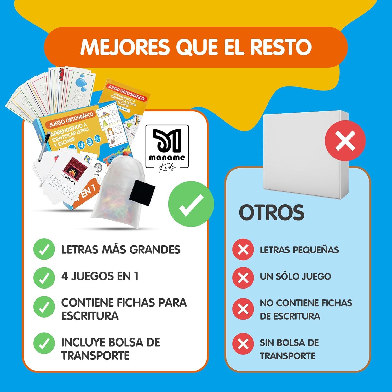 REGALO NAVIDAD Y CUMPLEAÑOS PERFECTO PARA NIÑOS Y NIÑAS: Ideal como regalo educativo para juegos niños 4 años, juegos de mesa niños 6 años o cualquier ocasión especial. diseñado para fomentar el amor por el aprendizaje en niños y niñas de 3 a 6 años. si tu hijo es muy despierto fomenta su aprendizaje con juguetes niños 2 años como el juego ortografico maname.