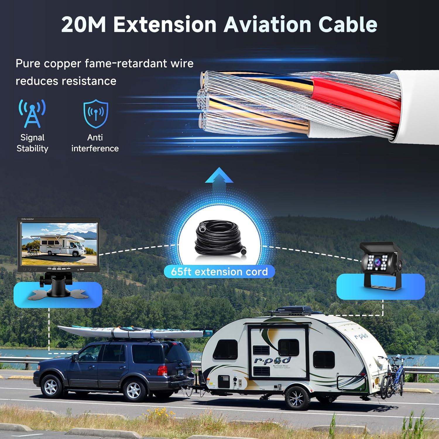 No conecte el cable positivo y negativo al revés. Solo funciona con fuente de alimentación de 12V-24V. El Podofo Kit de Cámara de Visión Trasera Coche incluye una cámara de seguridad para autocaravanas con monitor LCD de 7 pulgadas, visión nocturna con 18 LEDs IR, cable de conexión de 4 pines y soporte rígido. La cámara es impermeable IP68 y no incluye líneas de guía. El monitor de 7 pulgadas tiene entrada de video de 2 canales, brillo ajustable y contraste, y puede girar horizontal y verticalmente para una visualización personalizada. El cable de alimentación de aviación de 4 pines asegura una conexión segura y anti-interferencias.