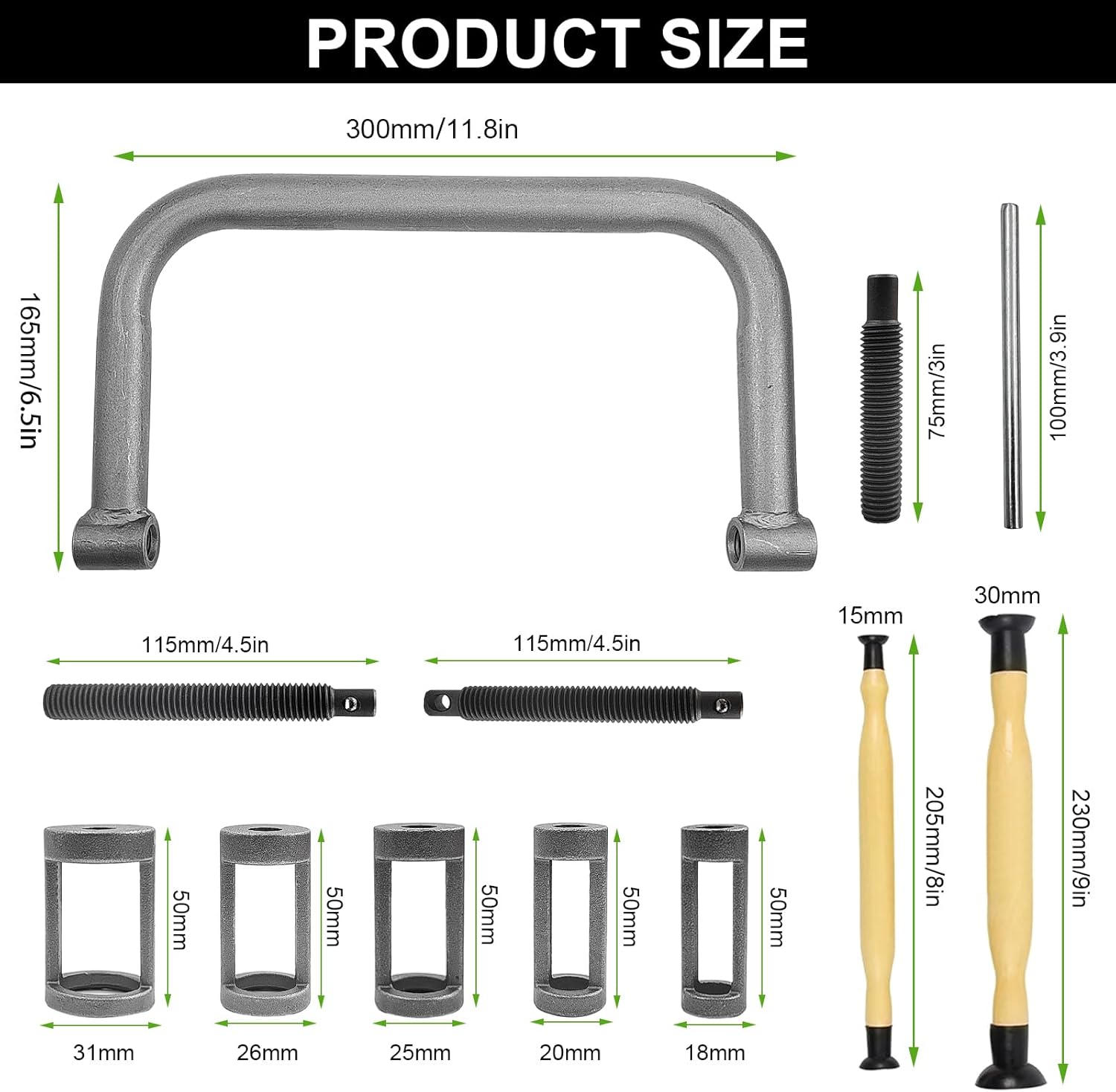 Tamaño de abrazadera en C ancha: 300 × 165 mm