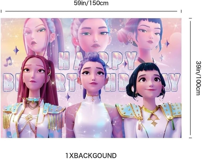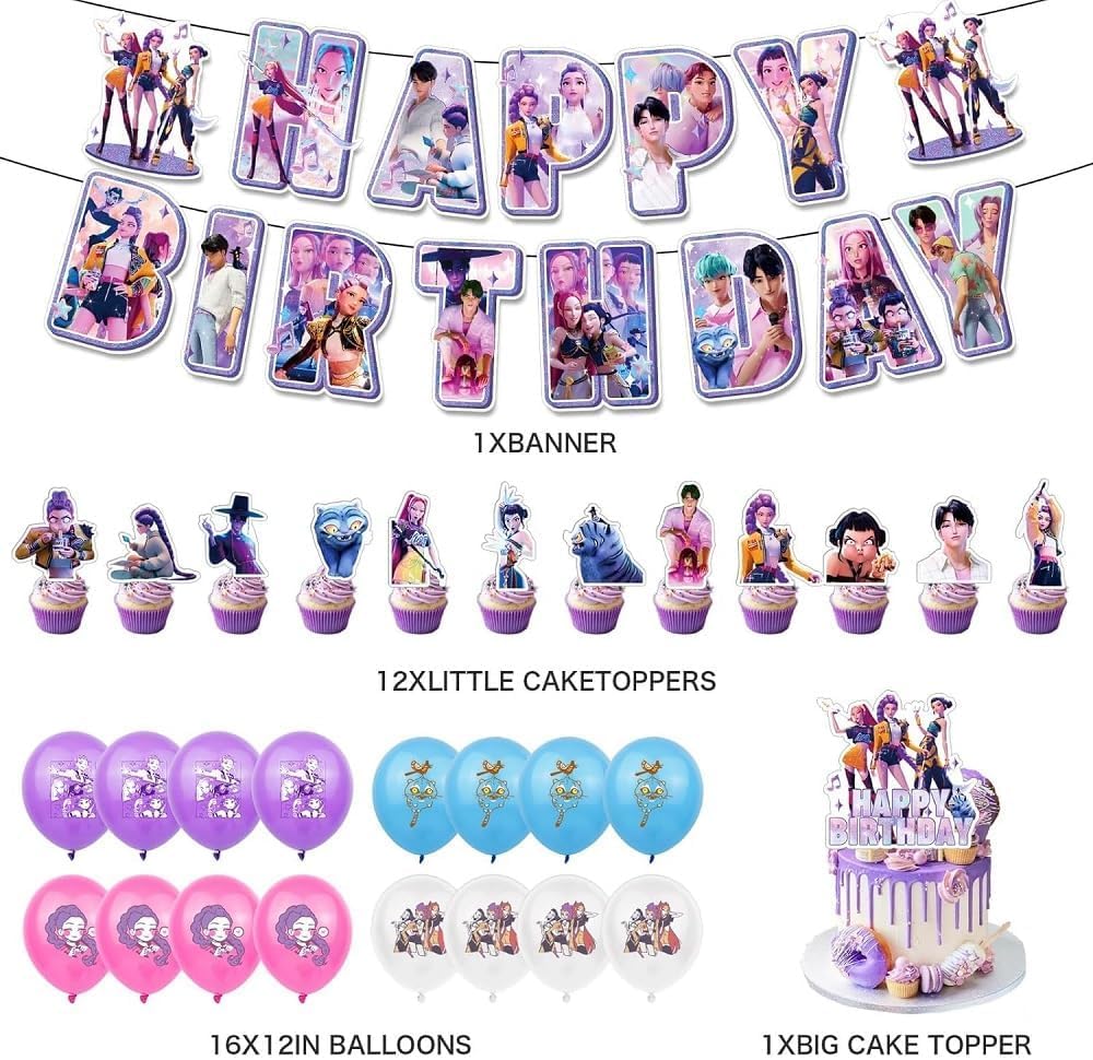 Decoraciones de cumpleaños, kit de decoración de fiesta con pancarta de feliz cumpleaños, globos, Rumi Mira Zoey Jinu Saja Boys Huntrix, Las guerreras K-pop, decoración para cupcakes, para fans