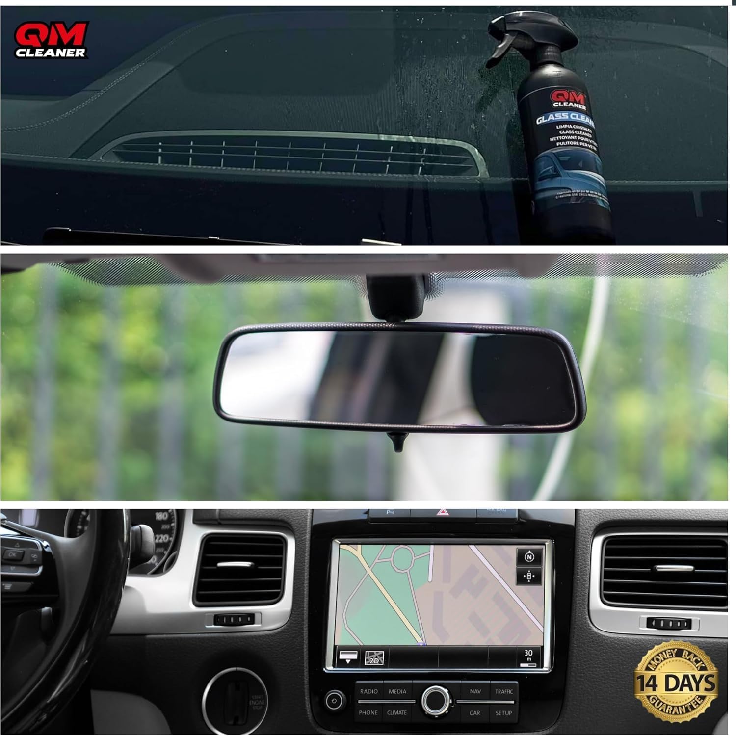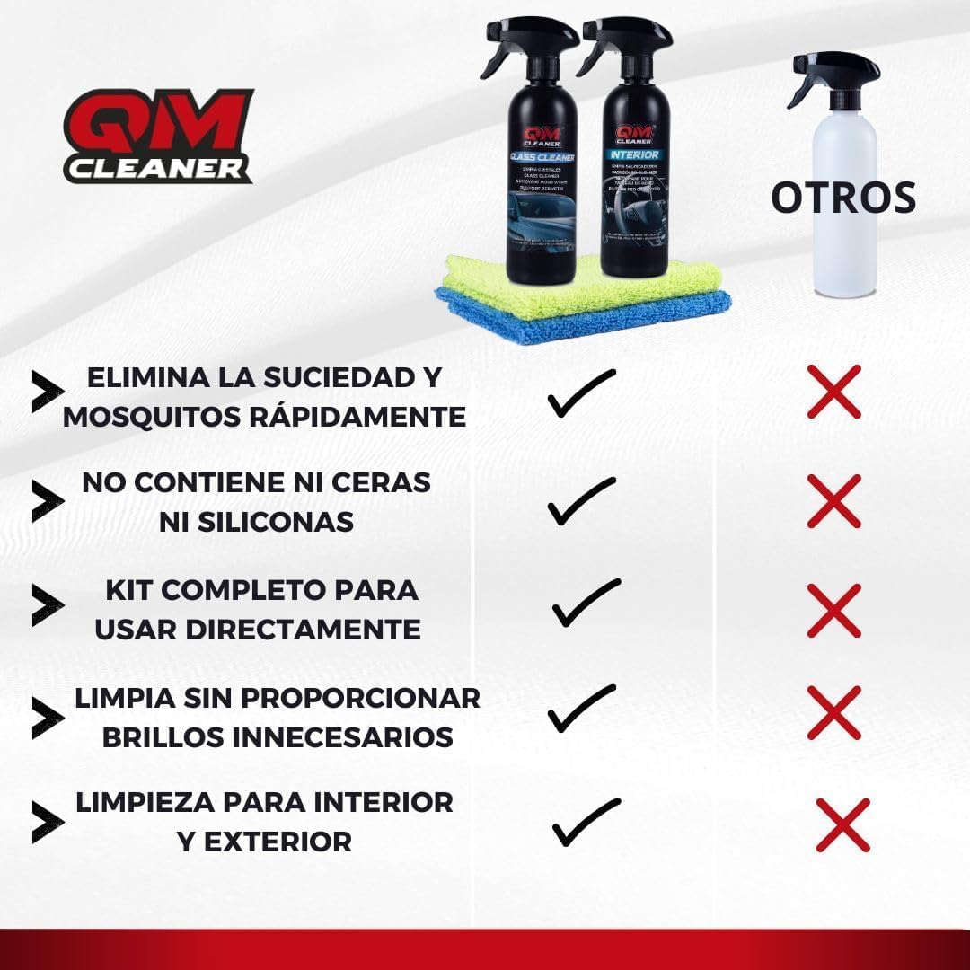 QM Cleaner Kit Limpieza Interior Vehiculo Limpia Salpicadero, Plastico, Cristales y Pantalla, efecto satinado | Incluye Limpia salpicaderos(500ml), Limpia Cristales/Pantallas(500ml) y 2 paños extra – ¿vale la pena?