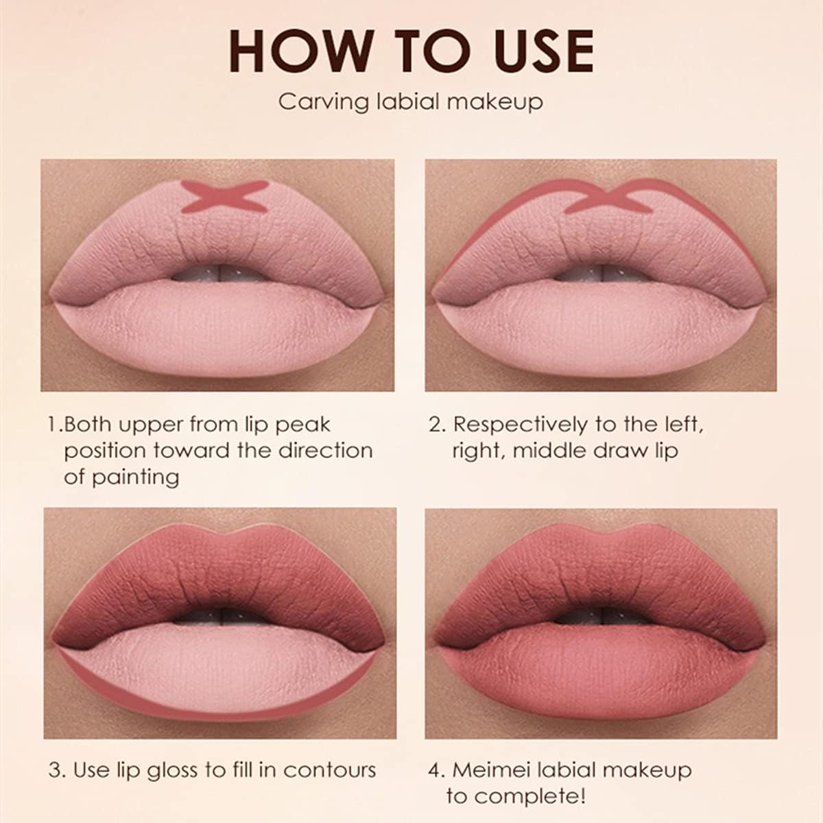 1. El delineador de labios dibuja la perspectiva de tu labio para hacerlo más regordete, el lápiz delineador es fácil de dibujar o revisar para su recarga de lápiz de labios suave y suave.