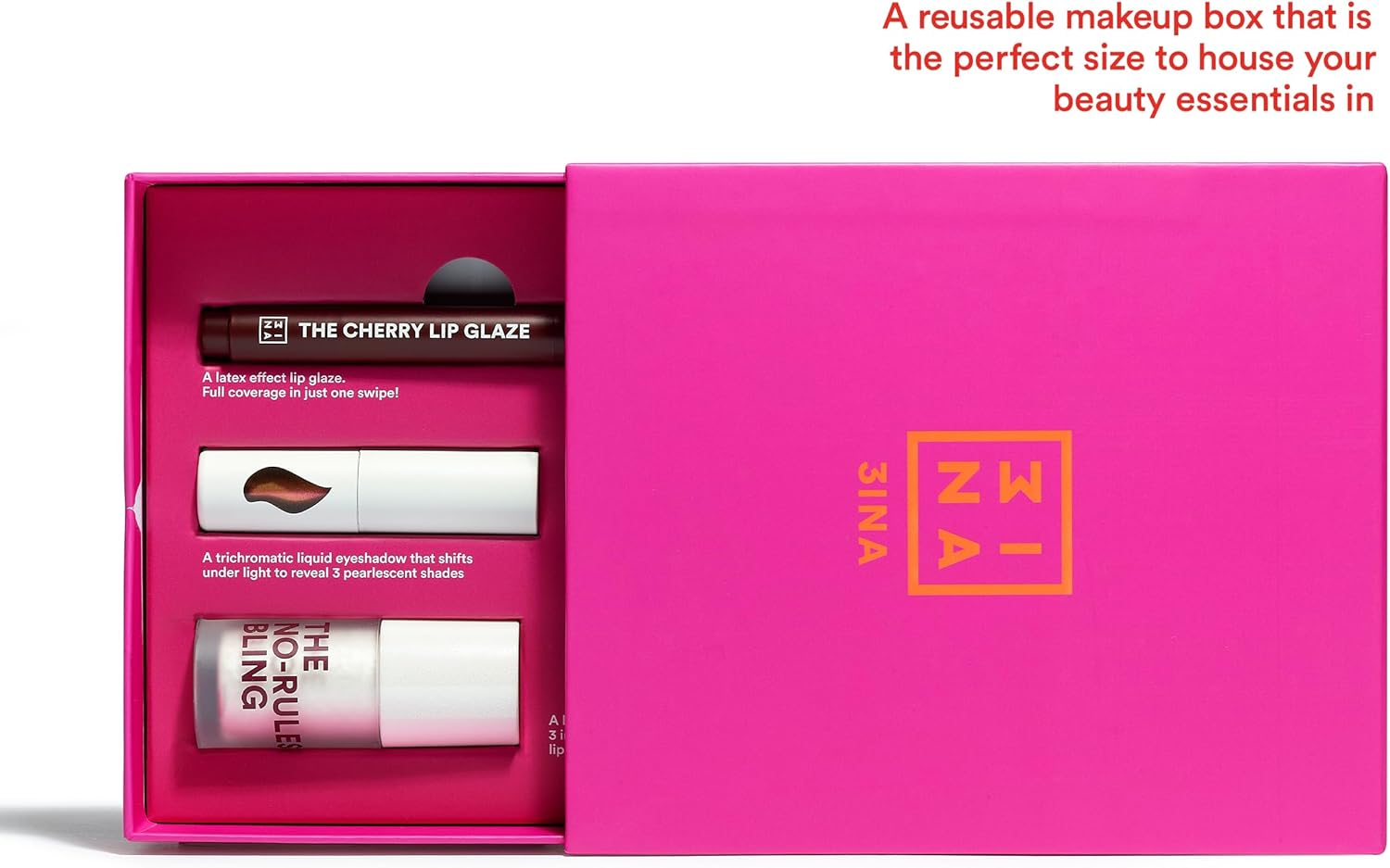 No esperes más y adquiere tu kit de maquillaje 3INA para lucir radiante en cada fiesta y evento especial. ¡Atrévete a brillar con los colores intensos y luminosos de The Fyre-Shadow, The No-Rules Bling y The Cherry Glaze!