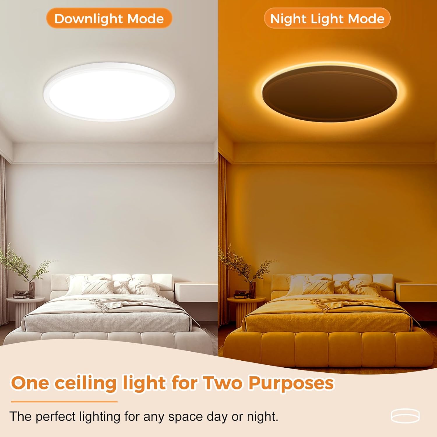 Luz Nocturna iluminada – proporciona un ambiente nocturno perfecto: plafon led techo con diseño de luz de fondo como luz nocturna, temperatura de color de 1800K; potencia de solo 6W, le proporciona el ambiente nocturno perfecto para ayudarle la calidad del sueño.