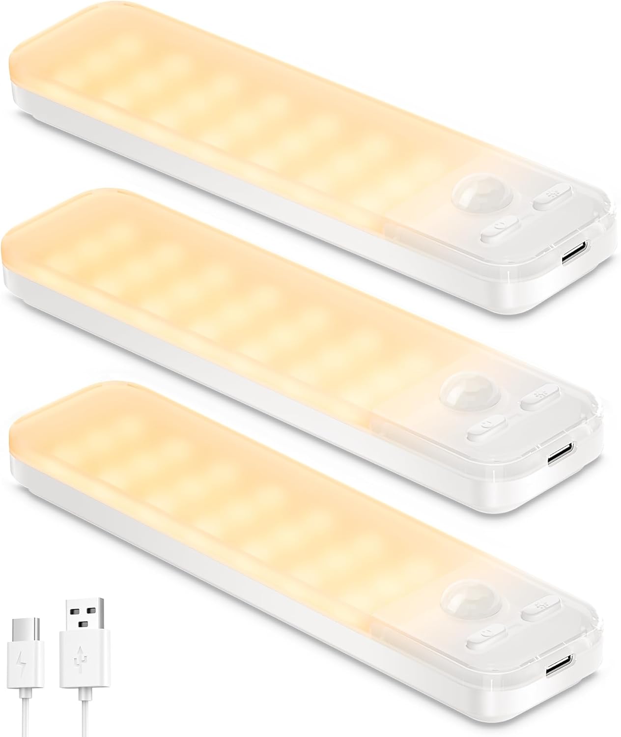 Ylatoial Luz de Armario, 3 Piezas 15CM Luz Nocturna con Sensor Movimiento, 6500K USB Recargable LED Armario para Gabinete, Cocina, Escalera, Pasillo, Sótano, Garaje – Blanco Cálido – ¿vale la pena?”