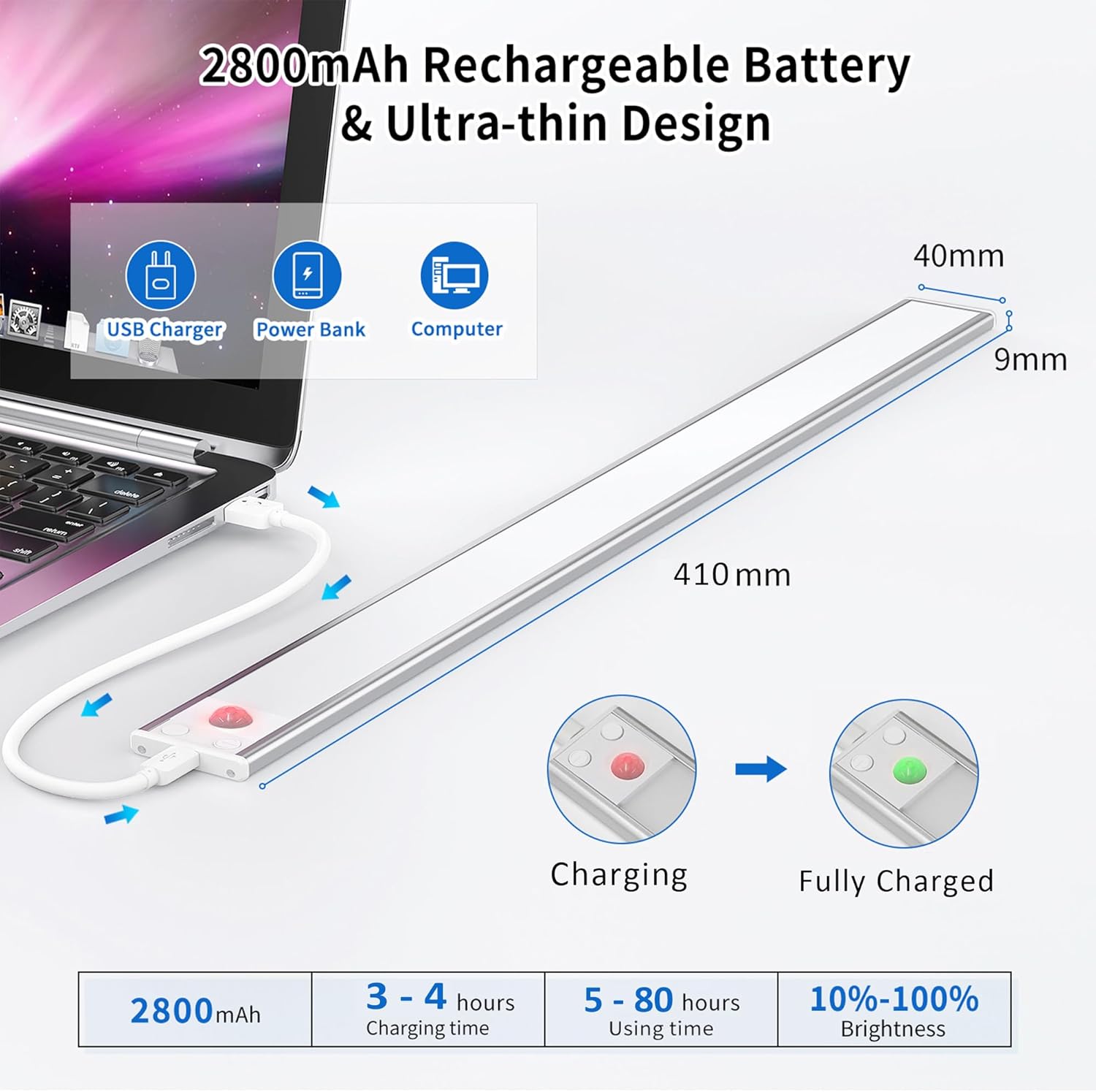 La Luz de Armario con Sensor Movimiento 6500K de OUILA es una lámpara LED adhesiva diseñada para iluminar espacios como gabinetes, pasillos, escaleras, sótanos, cocinas, garajes, entre otros. Con un cuerpo de aluminio ultradelgado de 9 mm, esta lámpara se adapta perfectamente a cualquier superficie. Cuenta con 3 modos de iluminación, una batería recargable de larga duración y una función de memoria de atenuación continua. Además, su instalación es rápida y sencilla, ya sea mediante imanes o cinta adhesiva.